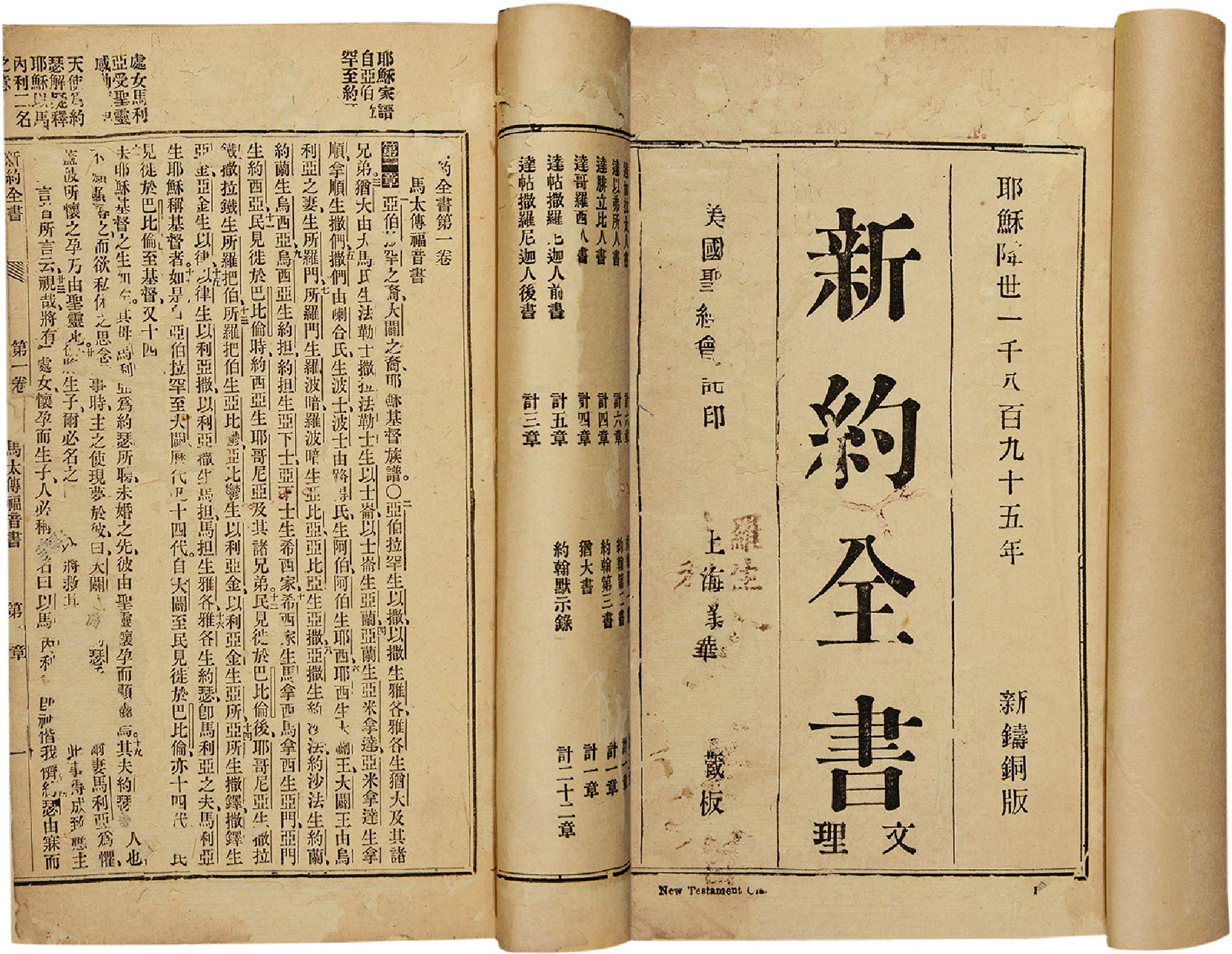 基督教将旧约全书与新约全书合称圣经,所谓圣经,是基督(天主)教、新(基督)教、东正教共同信奉的经典。早在明末清初,西方传教士即开始尝试将旧约经典节译成中文。利玛窦、汤若望等耶稣会教士更是怀抱殉教的觉悟,前来东方布道,顺便普及西洋当时所谓的先进科学。