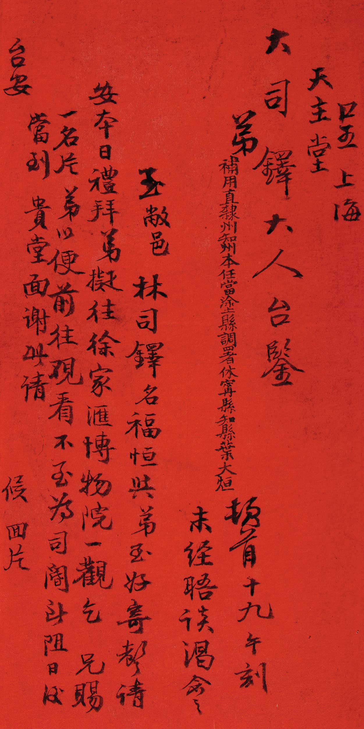 叶大烜呈上海天主堂大司铎名片:内容关于参观徐家汇博物馆