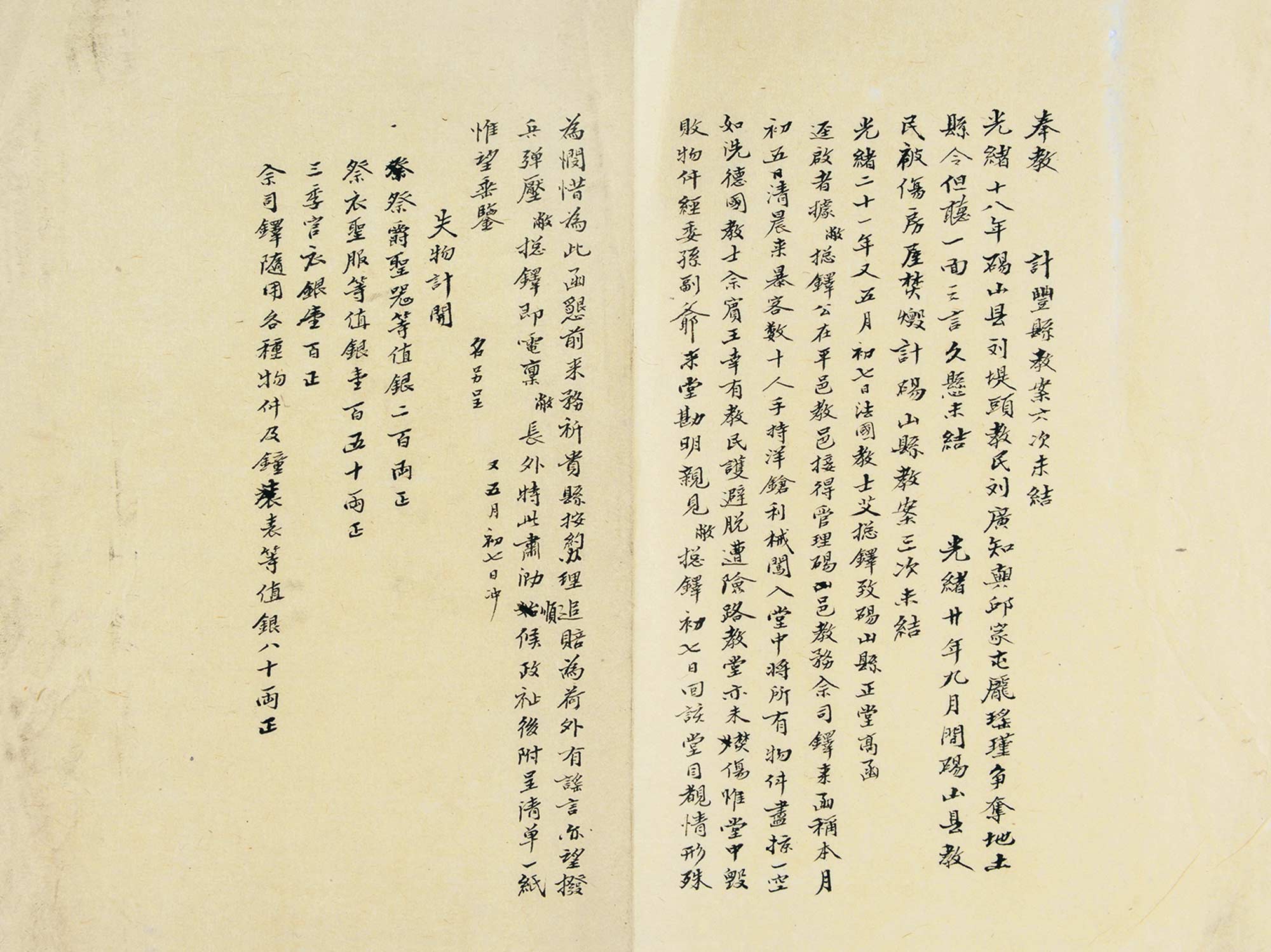 丰县教案呈文:内容关于洋主教针对民众砸毁教堂的索赔
