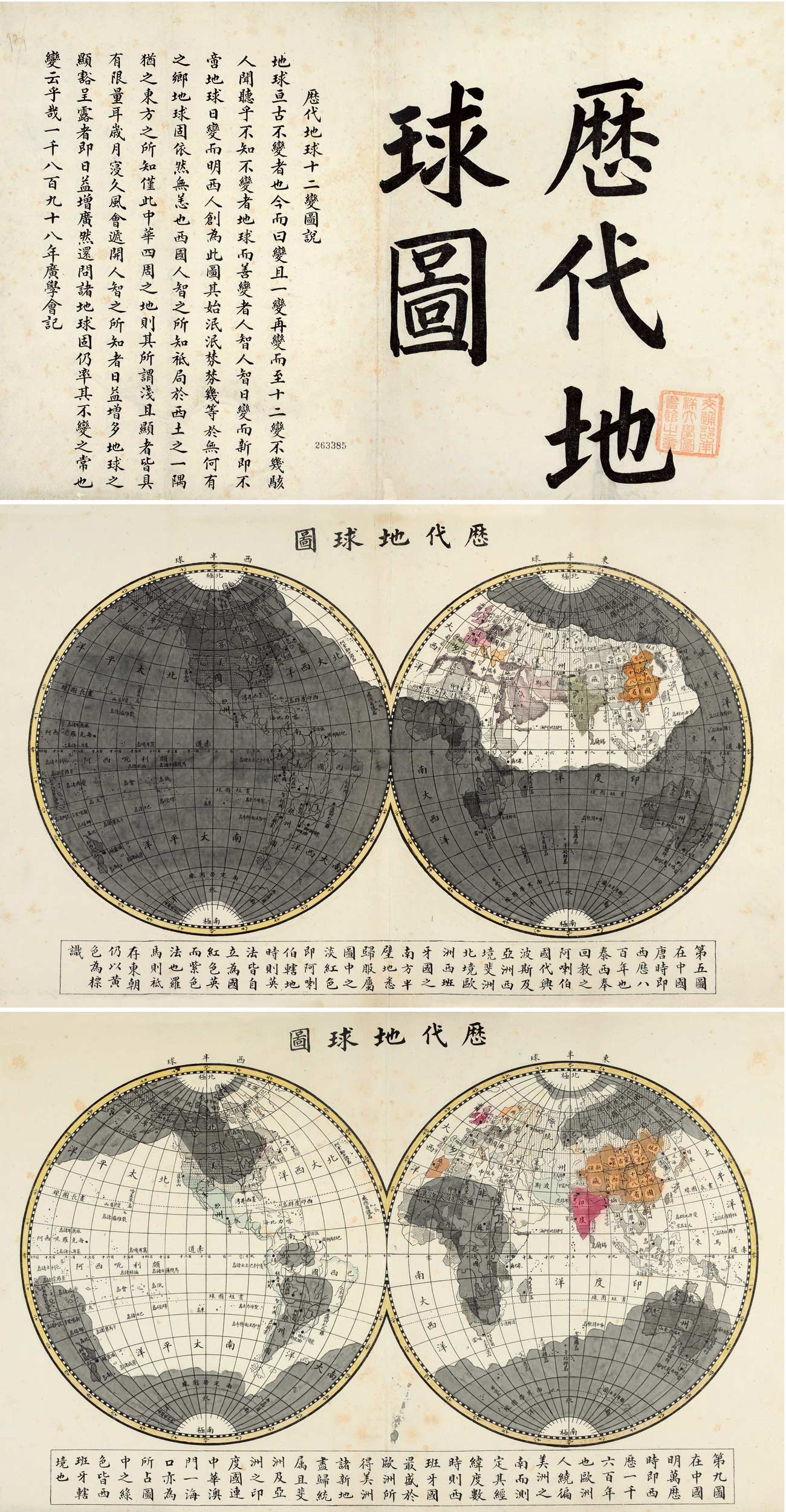 历代地球图:光绪二十四年广学会手工设色本,未经出版