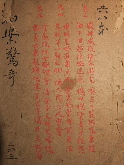 每册封面有朱笔手书回目,正文天头有主笔校正,卷十一天头通篇朱笔“补阙”,当为听莺斋进藤氏手迹。明德馆为秋田藩校,宽政元(1789)年藩主佐竹义和设立,馆内硕学有村濑栲亭、山本北山两大汉学重镇,汉学、算术、中医等学问皆为当时权威,明治年间废立。