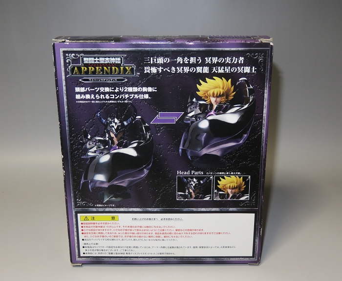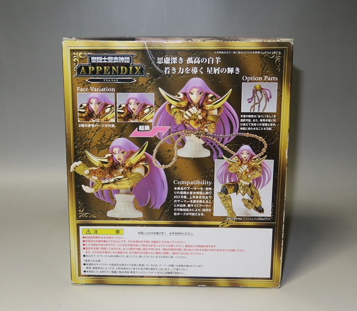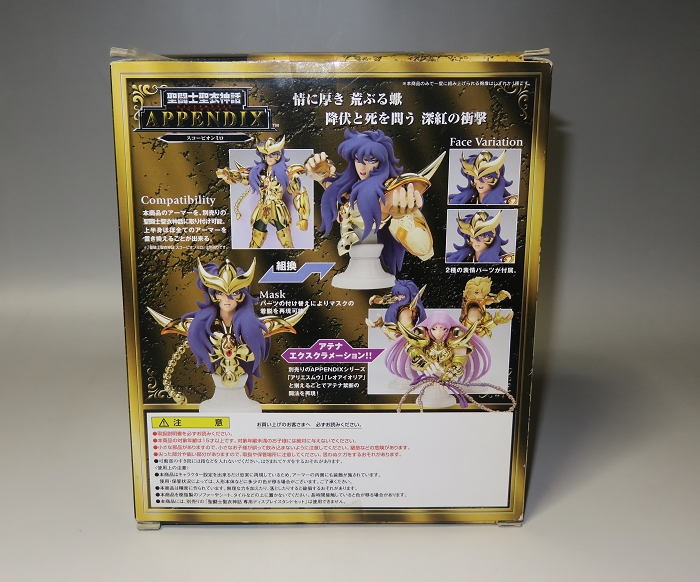 以「圣斗士圣衣神话系列」系列周边品为主流,进一步扩充圣斗士星矢的世界观系列的「APPENDIX」(附属品)登场!附有两种可替换的头像表情,均可用于圣衣神话系列的黄金圣衣和冥衣卡妙(另行购买)的头部替换。胸像附带的胸甲也可和神话系列(包括冥衣)的圣衣胸甲互换。