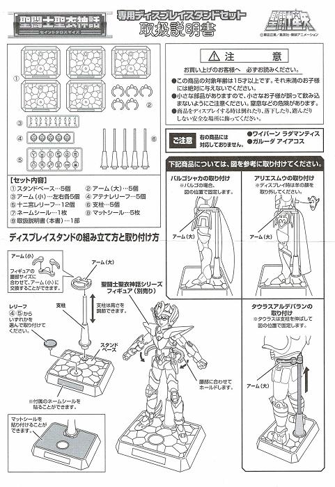 以台座为主的各种配件是圣斗士模型必不可少的鸡肋。这话听起来很矛盾,实际到手发现更矛盾。鸡肋的特点在于食之无味,弃之可惜,配件则是没有难受,有了更难受。这方面日本人和欧洲人比较讲究,中国人和美国人则不拘小节。本文汇集了所有已发行的圣斗士专用配件,鸡肋与否,读者自行判断。