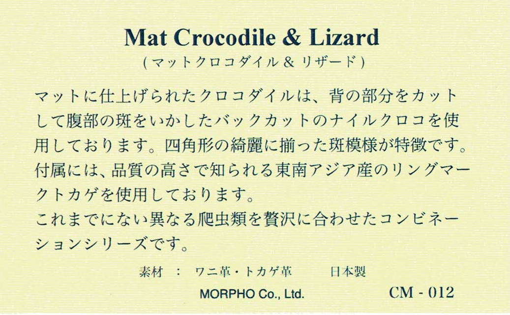 表側素材:尼罗鳄(Crocodylus niloticus)