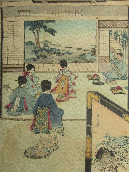 絵師の名はないが、その歌の内容に合わせて描かれた芸者たちの芸事や髪梳きの場の描写の美しさはすばらしいものがある。
