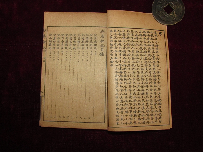 书长15.5×10.3cm,14行27字,四周单边,下黑口无鱼。版心上题“私房秘记”,内记节目,叶数。有光纸,软体,印刷清晰。46叶92面,品较好。
