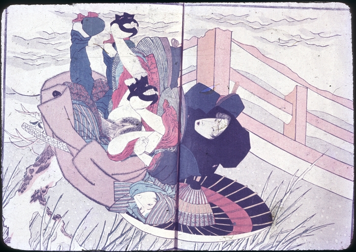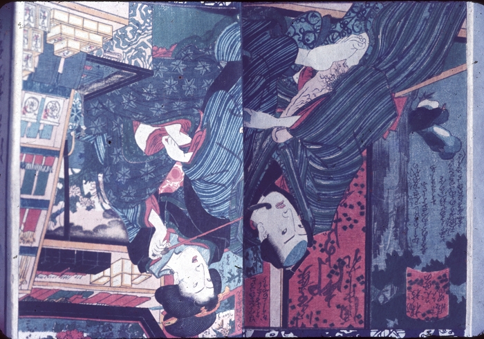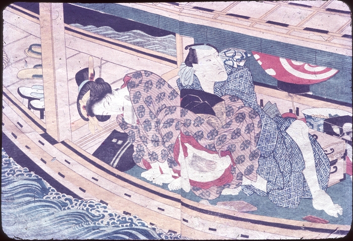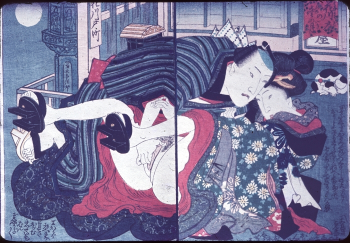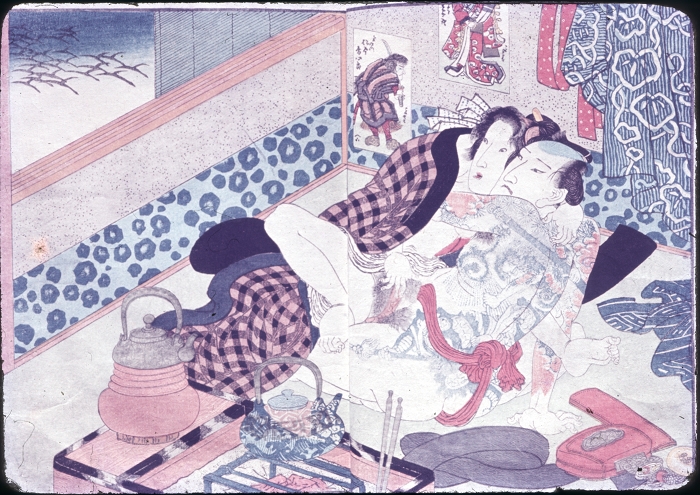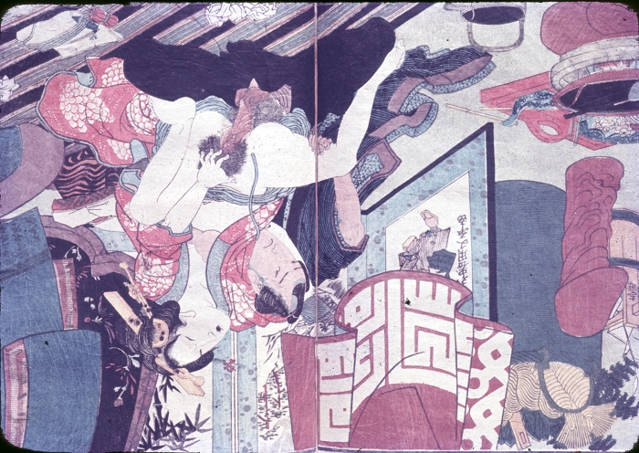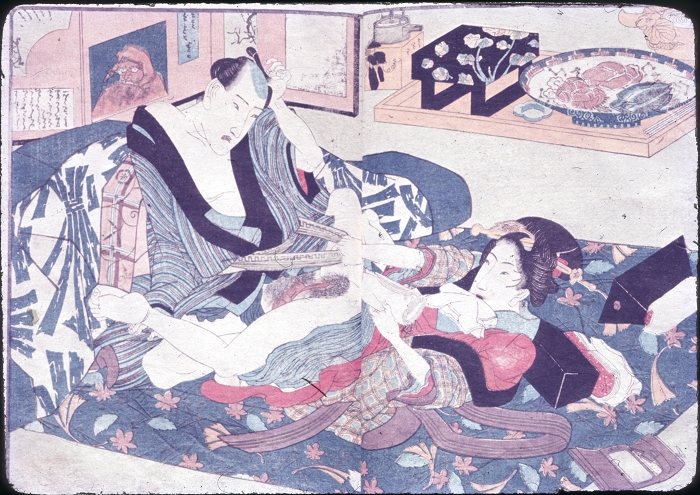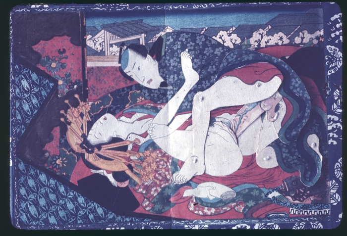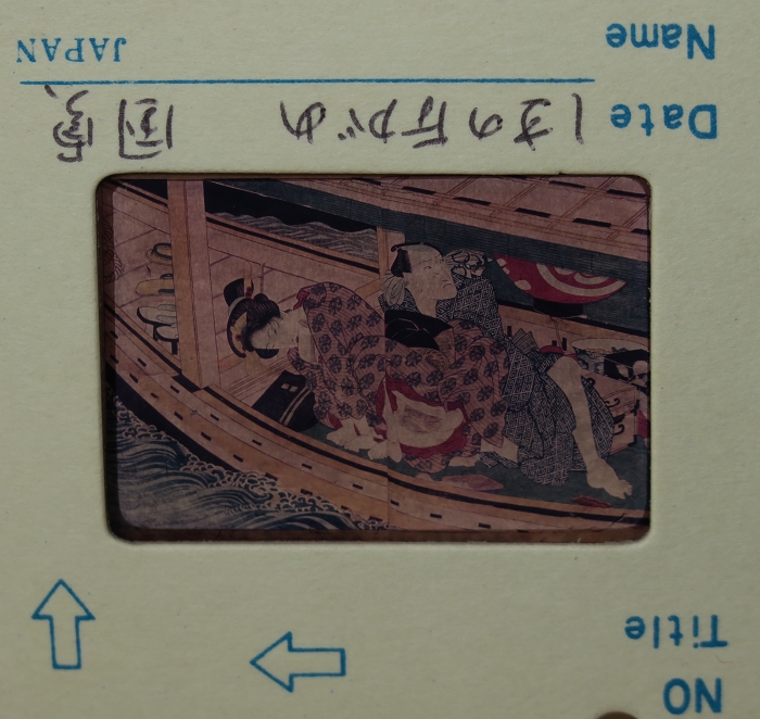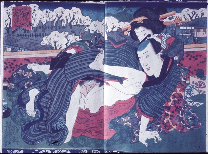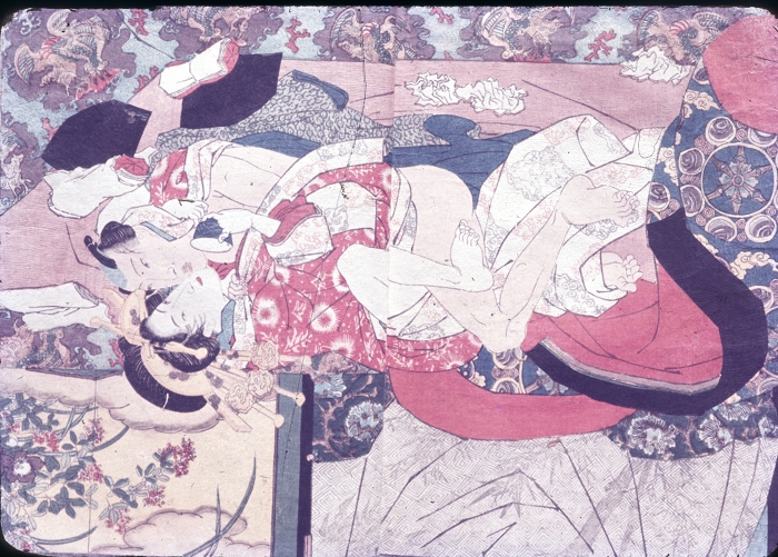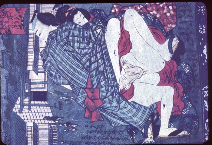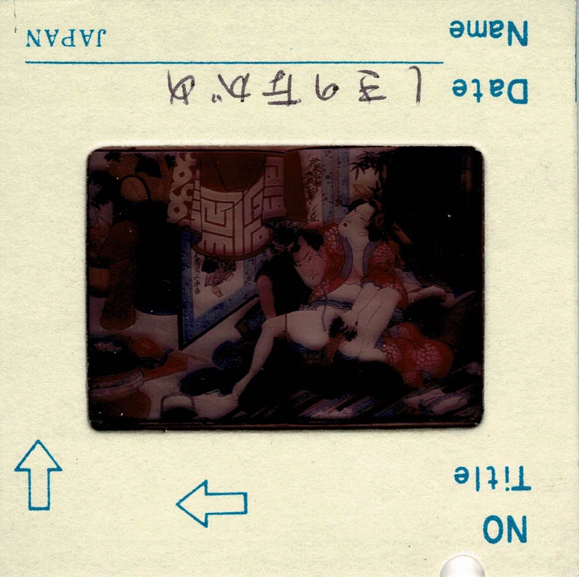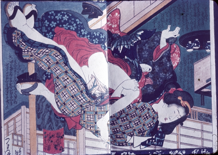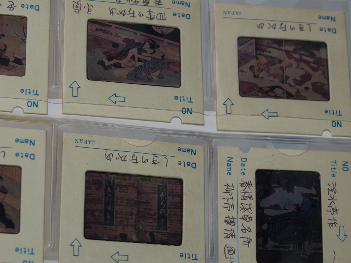 约60-70年代制作,应为日本某大型图书馆存档用。收录全是大师级的经典情色名著,已辨认出的有葛饰北斋、歌川国芳、喜多川歌麿、溪斋英泉、又平国贞、铃木春信・胜川国盛、恋山笑川等。目前展示的扫描出的写真为淫水亭作,柳下亭种清画《春情浅草名所》,及歌川国芳名作《しきのながめ》,从中可以看出扫描后的效果非常好,可传原本之真。