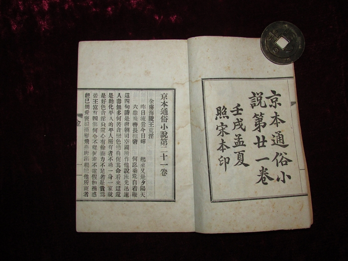 金虏海陵王荒淫,不著撰人,民国十一(1922)年叶德辉金属活字排印本。封面后配,贴白纸墨笔题签两张:“一级黄色古典小说”、“海陵王,京本通俗小说第廿一卷。照宋本印,严禁青年阅读”。牌记题“壬戌孟夏照宋本印”,卷端宽行大字“京本通俗小说第二十一卷”,次行题书名。后附丁巳(民国六年)閏二月春分郋园记;丁巳夏五再记。