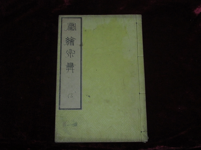 是书按五常,即仁义礼智信分册,前无总目,每卷前有分目。每卷末叶下有“止”字。后附嵩山房藏板目录5叶,收书162种,每种皆有简介,可谓江户时代之广告。此书广告称:“唐本翻刻,全五册,人物、花鸟、兰菊梅竹、草木、兽类、虫类等画谱笔法,附有画论”。另据书目看来,十有八九为唐本,彼时汉学之发达,日人之精巧无耻,由此可见一斑。