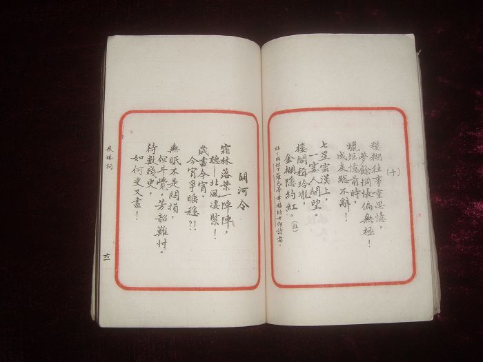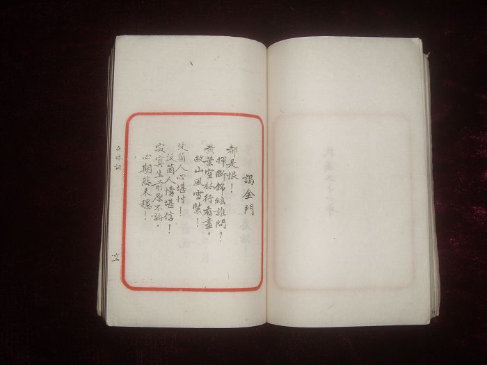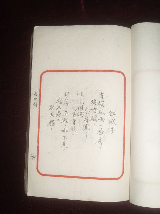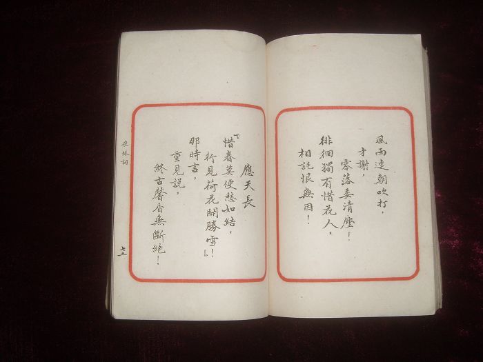 书长15×10.3cm,半框9×7.4cm,朱框无行格,框外题书名、叶数。白纸,手书影印,巾箱小册,极精美。前序22页,正文121叶,合计264页,品好。