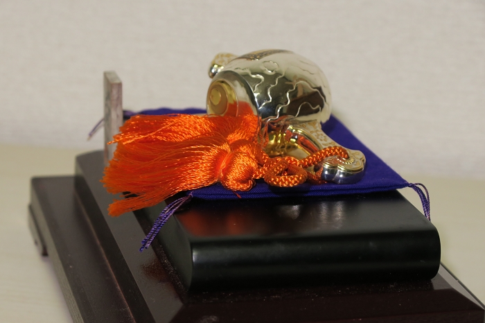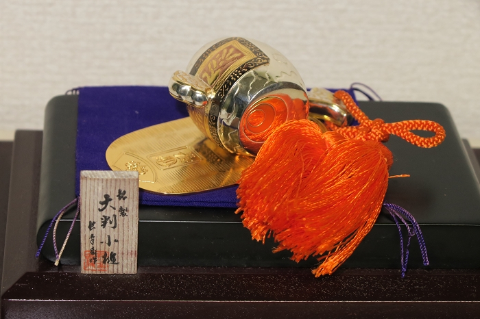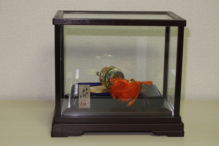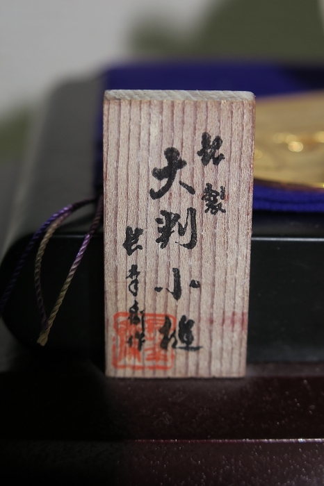外箱付。宝槌和台座粘结牢固,无法分离。全品无伤,状态好。宝槌侧面刻印「銀製」。
