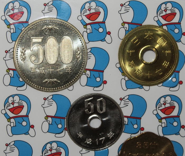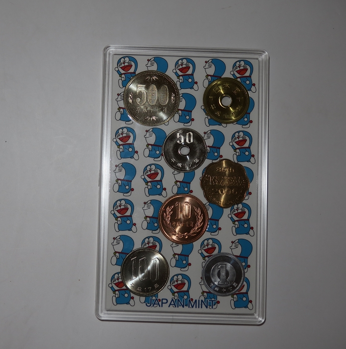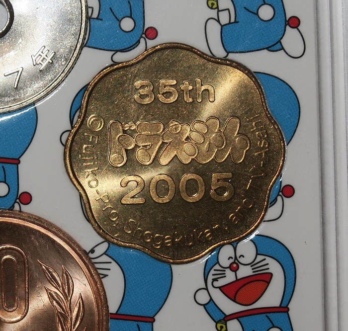 平成15年4月より独立行政法人になり、今まで以上にお客様に喜ばれる新しい貨幣セットを販売しようと考え、その一つとして、広く国民に愛されているキャラクターの貨幣セットを販売するようになりました。その第4弾として、2005年がドラえもん誕生から35年の節目に当たることから「ドラえもん誕生35周年2005プルーフ貨幣セット」が販売されました。