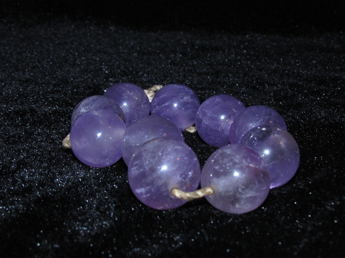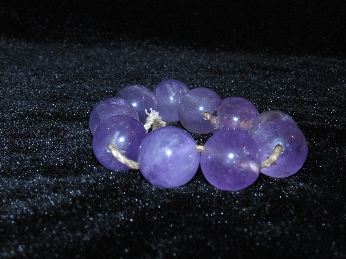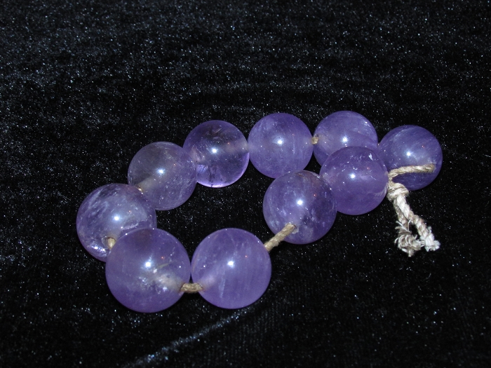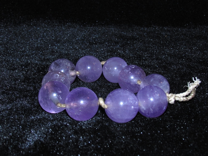 传说中和东珠齐名的西珠,(又称紫珠),做工精细,光泽好,手感滋润。珠子越大越贵是基本常识。当年西亚人来中土交易,这比银子吃香,所以都穿成串当钱用。这串以纯天然,绳子包浆,珠子纯手工度以及成品后色度和大小几乎相同这几点看来,大概是百年前波斯人的旧藏,大珠难得,完全没动过手脚的尤其珍贵。
