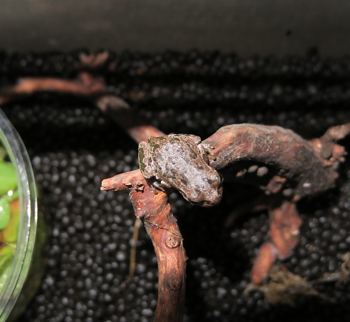 5,传说中的日本变色雨蛙(Hyla japonica),能变三种颜色,珍贵品种,目前基本有价无市。性格温顺,亲近人,食量大。可惜不抗折腾,故于去年冬天。