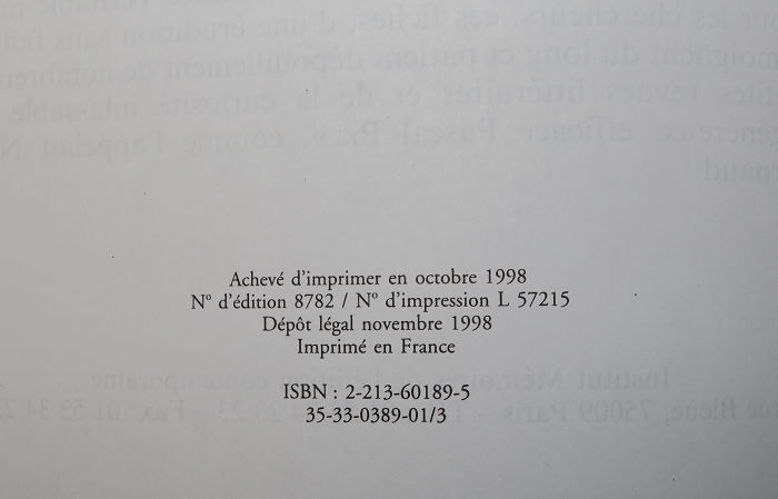 From the blurb: ” ‘L’emploi du mot “Enfer” pour désigner les rayons de Bibliothèque où sont rangés les ouvrages réputés contraires aux bonnes murs n’aura pas été pour atténuer la curiosité que de tels ouvrages suscitent. Qu il y ait un enfer des imprimés, cela donne presque à rêver, même à ne lit jamais. Le feu est un des éléments essentiels de la mythologie du livre’. Pascal Pia, critique littéraire renommé, journaliste et écrivain, donne ici le fruit de “soixante années de vagabondage parmi les livres”.