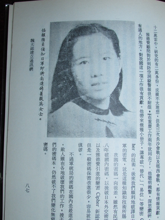 国军唯一以军功升至将军的女性。破译日军偷袭珍珠港的东风雨密电,可惜美军蠢货不信中国人的情报,结果地球人都知道了。姜毅英作为戴笠亲信,去台后担任雨声小学(纪念戴笠而设立)校长直至退休,高寿98病逝。