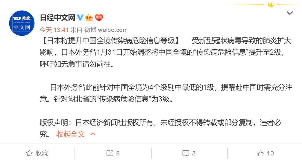 日本情况比较尴尬,和美国一样,政府建议“尽可能不要去中国”,警戒程度第一级,就是最高级别。但只是建议,没有强制力。