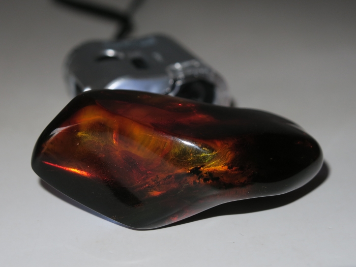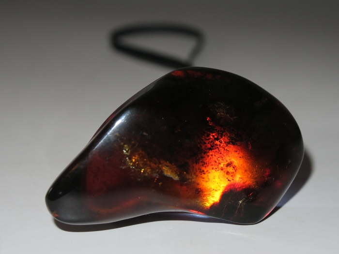 缅甸血珀是最古老的琥珀,硬度高,质地韧,耐磨损,适宜雕刻。缅甸琥珀属于矿珀,生成于一亿年以前,矿藏零星分布缅甸北部的小型矿区,受雨季影响,一年中只能有半年可以开采;且只能手工挖掘,开采不易,大料少见。少数琥珀在地下受热后进一步氧化,珀体颜色深红,世称血珀。