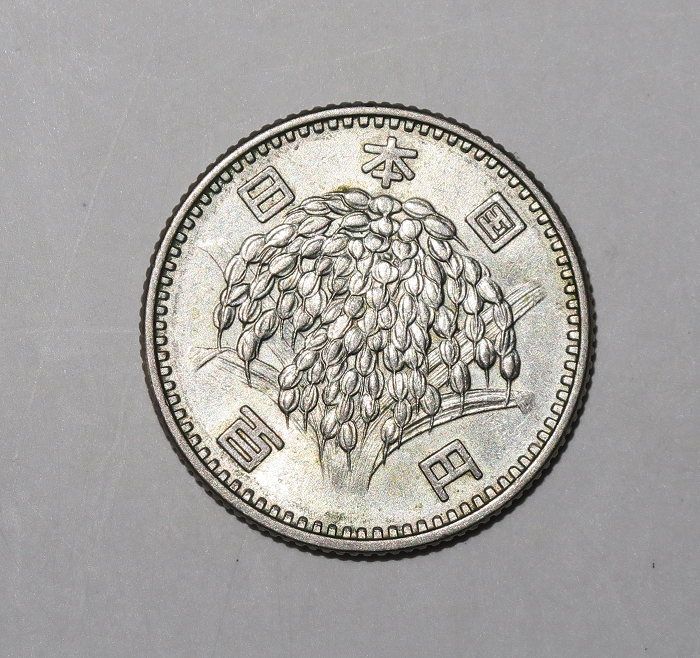 凤凰图案银币发行两年后的1959年,日本决定推出新版银币,面值依然是100日元,图案改成稻穗,象征丰收。当初计划10年间制造8亿枚,由于白银储蓄不足,加之世界进入新时代,电子工业、写真工业等对白银需求量暴增,在国际去除银币的大背景下,日本也不得不于1967年开始改用白铜替换银币。由于白银日益稀少,直至今日,日本所有硬币皆不含白银,稻穗图案的100日元由此成为日本最后的流通银币。