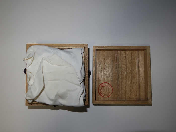 五彩包浆,做工精湛。盏身刻“住宅金融公庫昭和四十七年六月五日”,盏底刻“纯银、1000,日本国旗”。盒内有造币局篆印,是区分仿品的重要标志。