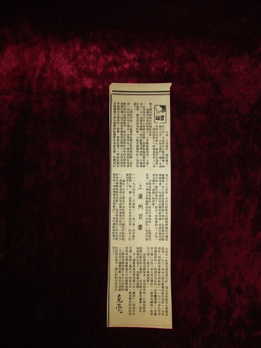 另有剪报一份,为克亮书话专栏“上广州买书”,内容涉及此书,全文如下: