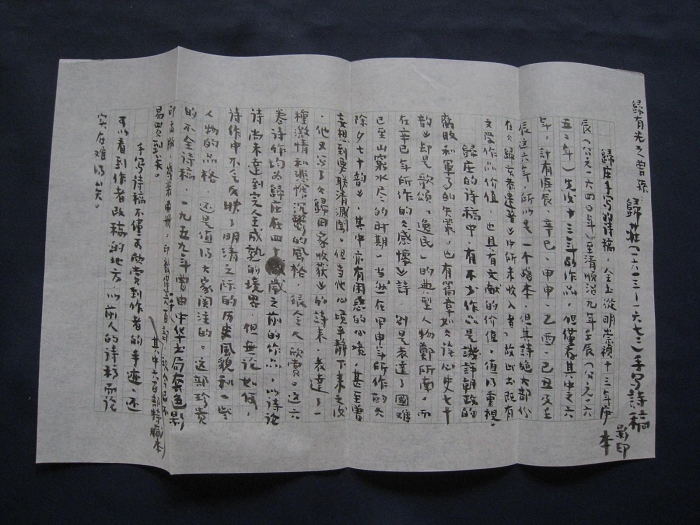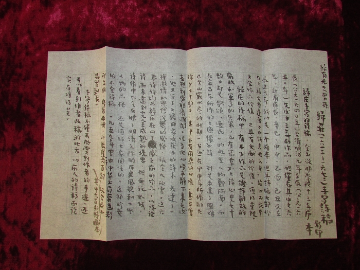 手写诗稿不僅可欣赏到作者的手迹,还可以看到作者改稿的地方,以前人的诗稿而论,实在难得矣”。