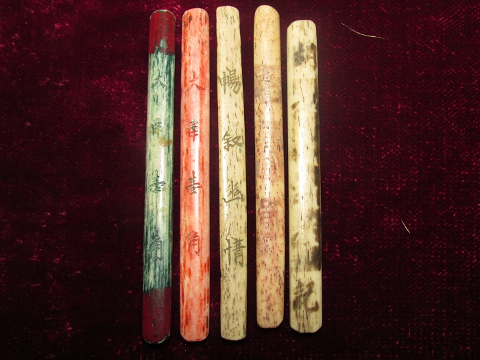 常州地区临时流通币制作的原料以竹为主,骨质罕见。骨币多为条型筹码,长约6-10cm,面值有5分、1角、2角、5角、1元等。骨质常临币在焦溪、三河口、雪埝、马杭、港桥、坂上、遥观等地均有发行,但实物留存至今已为数不多,值得珍惜。