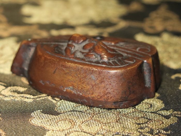 江户末期的小古董,铸造物,工艺精致。日本最后尊重中国文化的时代。伴随明治维新,所有中国传统一度被视为糟粕而废弃。虽然昭和(1925年)以来及时悬崖勒马,但很多中国风格的工艺品早已被洋人买走,流失海外。