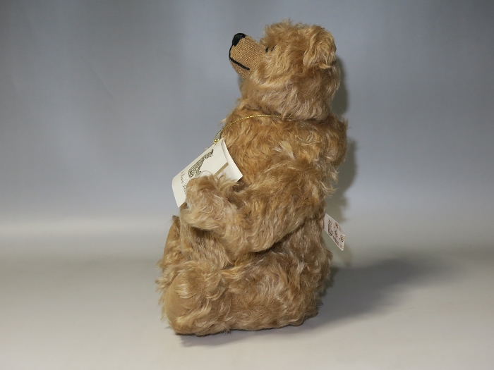 Biuin在旧史诗“雷纳德狐狸”的故事中使用的熊的传统名称,象征强壮和勇气。这是Benny生前缝制的最后一只泰迪熊,也是唯一以自己名字命名的泰迪熊。手绘玻璃眼睛,高级马海毛,纯手工刺绣,关节可活动,品相完好。