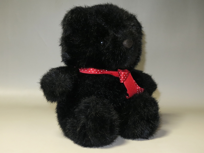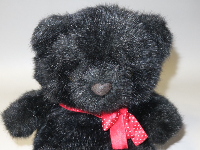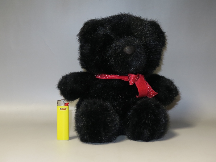 中国製氾濫の世界中、珍しい韓国製の熊の縫いぐるみ。真っ黒ものもとても可愛い、手作り完成度も高い、なかなかでないテディベアタイプ。状態良好、未使用。