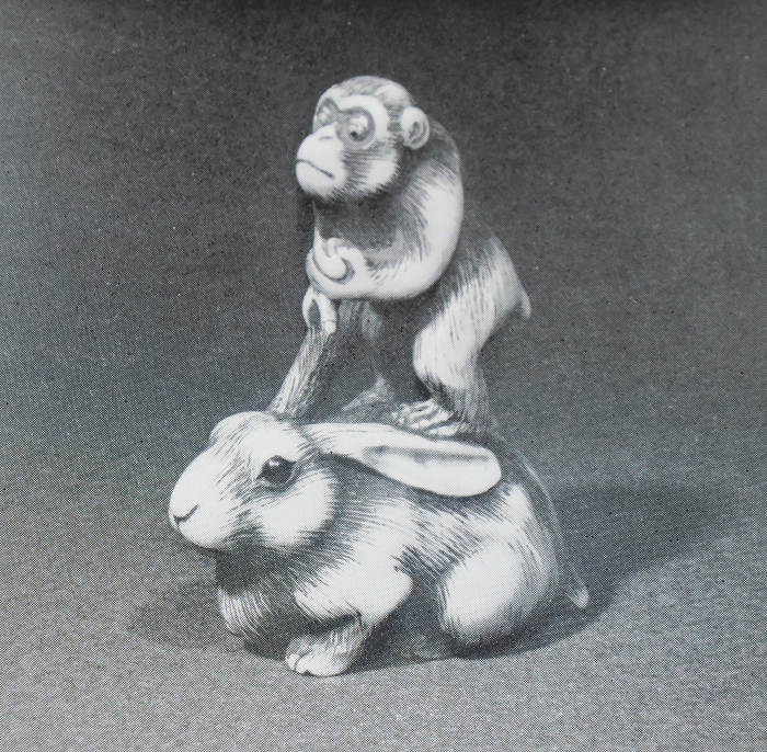 黑白图片出处《根付展—NETSUKE),1981年5月日本経済新聞社主催,外務省、文化庁、アメリカ(美国)大使館後援