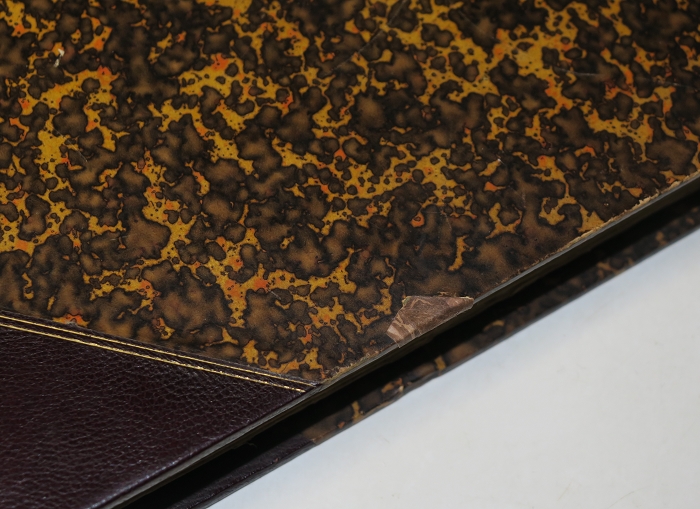 东京只有一家洋书专修店,号称日本唯一,真假另当别论,修复10万起价。自己动手1500搞定。在崇文庄买的大理石纸和无添加剂皮革保养油一共1万2,估计能用一辈子。