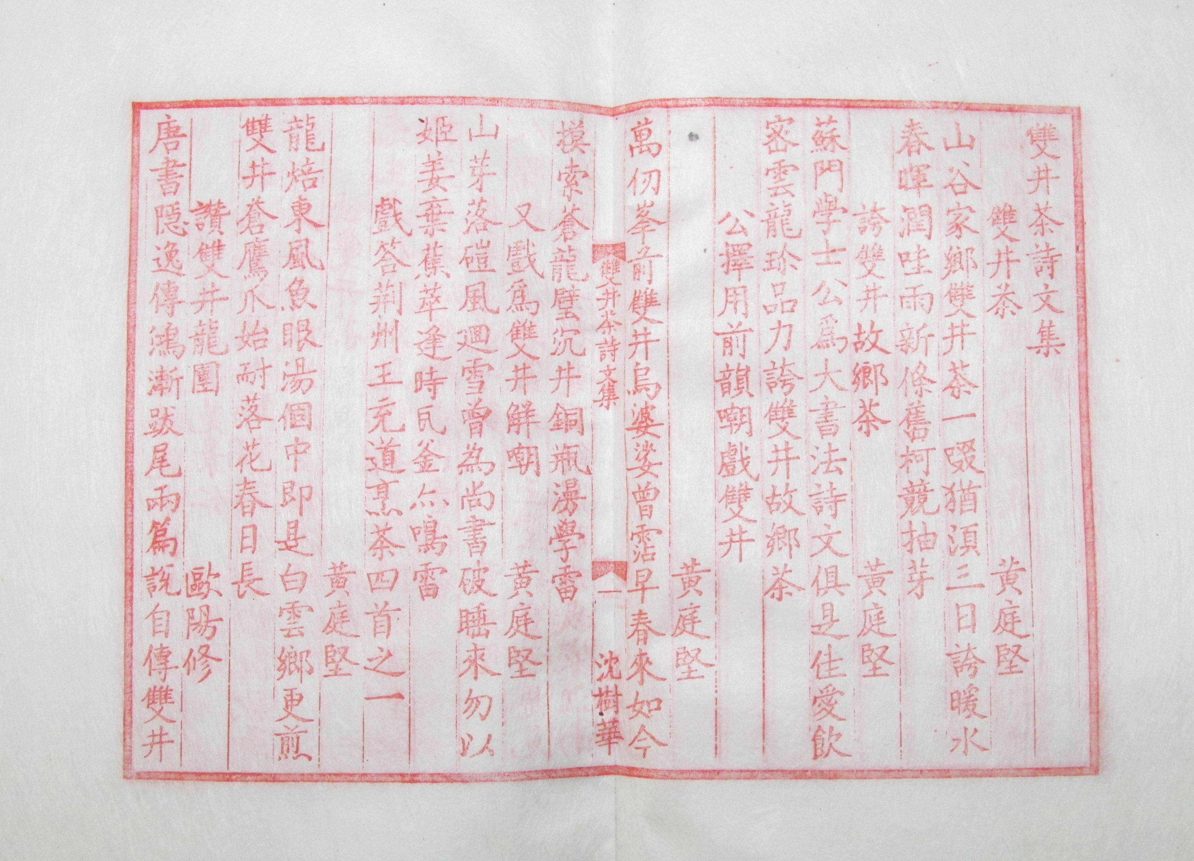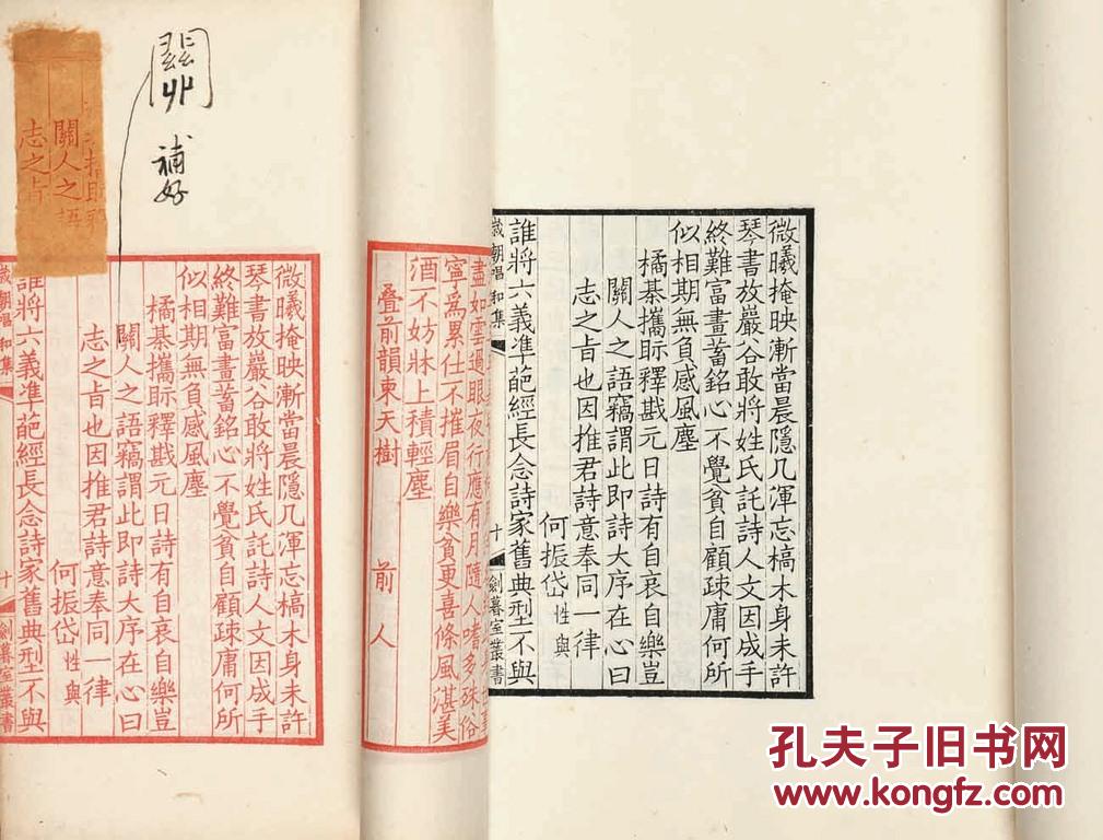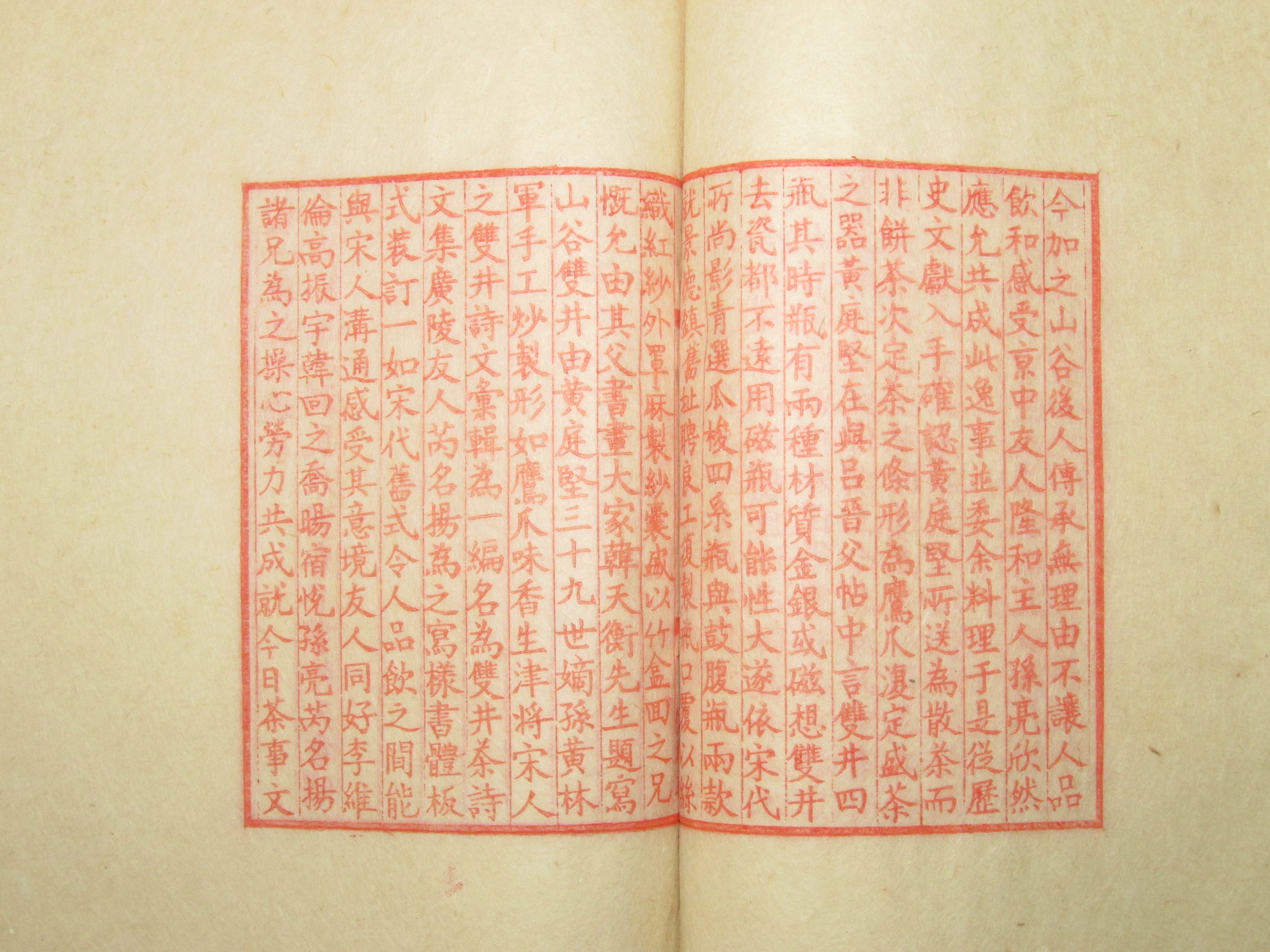 晚清红印本所用红色有两种:一为桔红色,又称朱印本;一为紫红色,又称洋红印本,现今泛滥的所谓清末民初红印礼品书,大体都是洋红本。此类货色在当日看来,无疑为笑料。卢文称:“印红书者。不可用洋红。以其见水即化。上者以银硃桃丹合四六成。用白芨煮水和之。下者。如旧日以红苋菜煮汤。收膏应用。均能沾水不变色。惟苋菜水现紫黑色。银硃桃丹则较鲜艳。今通常皆用银硃桃丹。已不知苋菜水之可印书”。