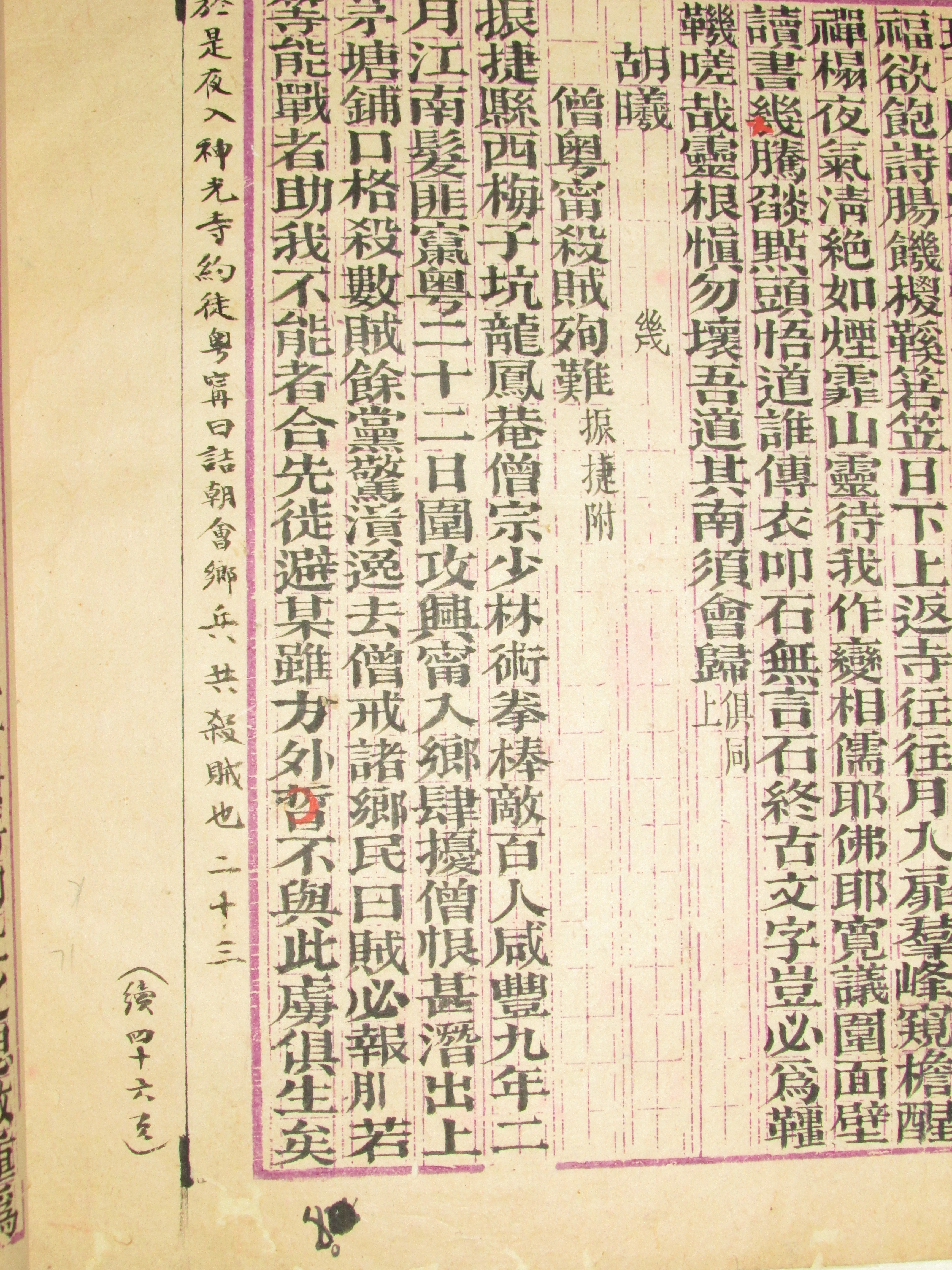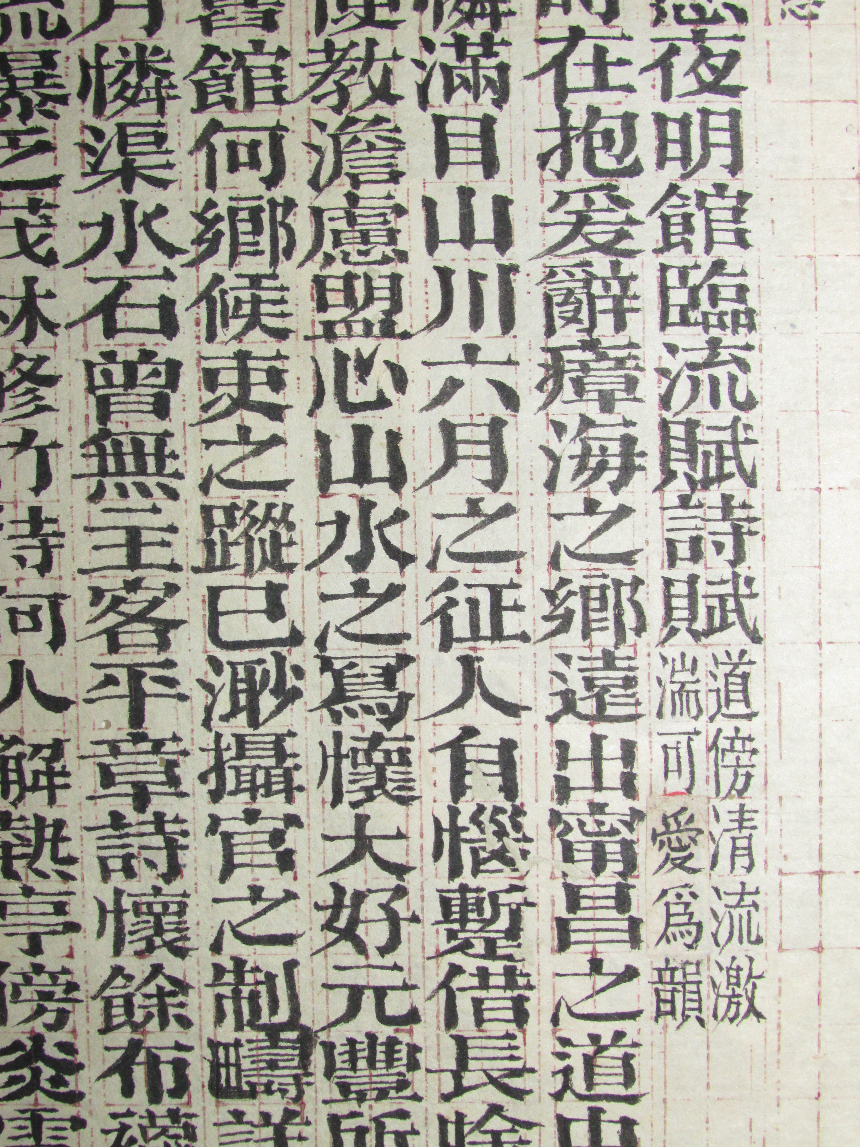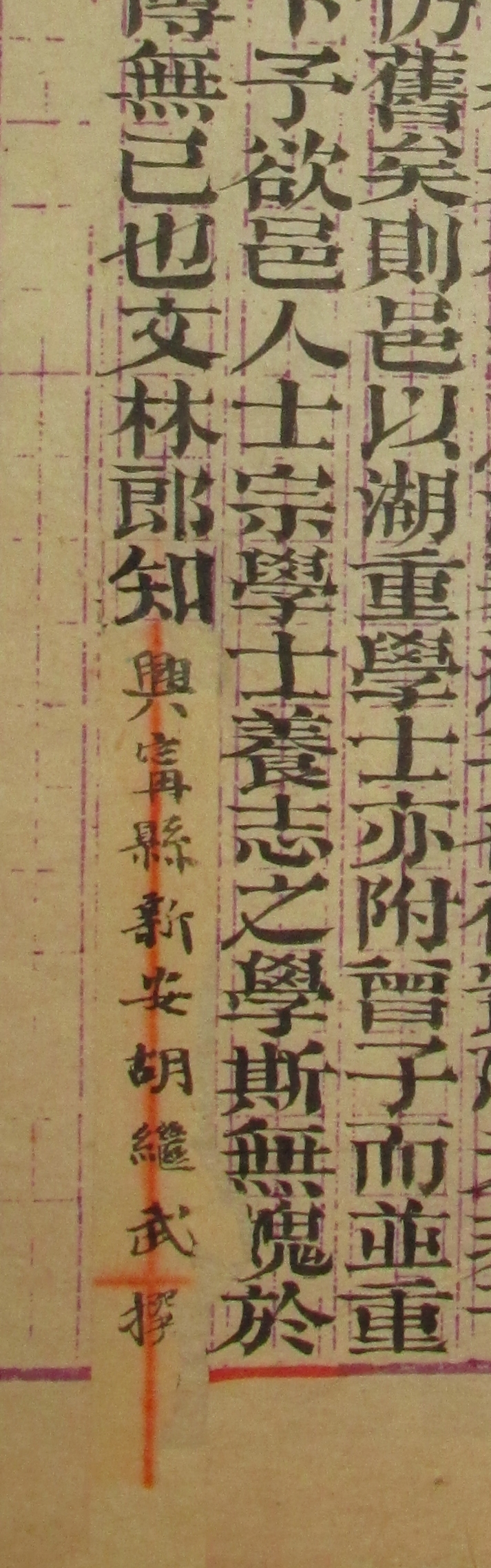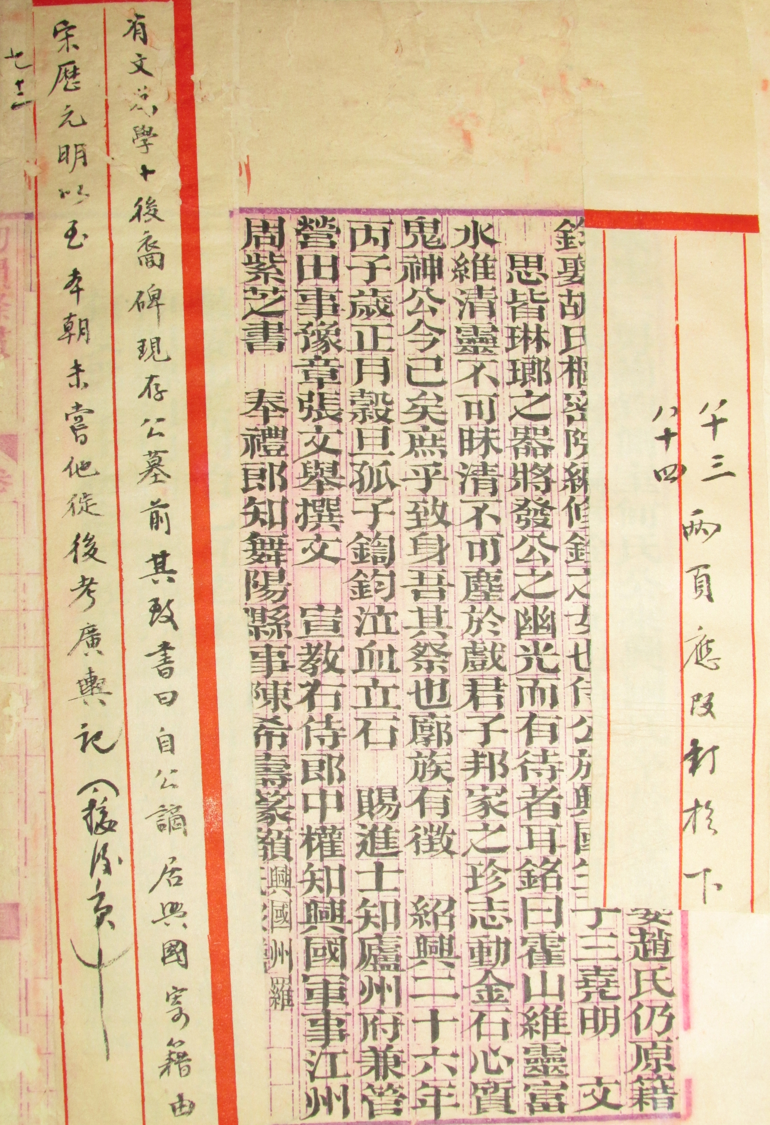 以样稿实物看来,写样肯定是方(花)格,或者说惟方(花)格才能称之为写样。但颜色未必只限于红色,也可是紫色乃至褐色,颜色不一,或许出于校勘之考虑。此外,两行之间留有空白的一行,中间亦有一条直线,应为刻版时的“界线”,也即书成后版本学术语所谓的“有界”。