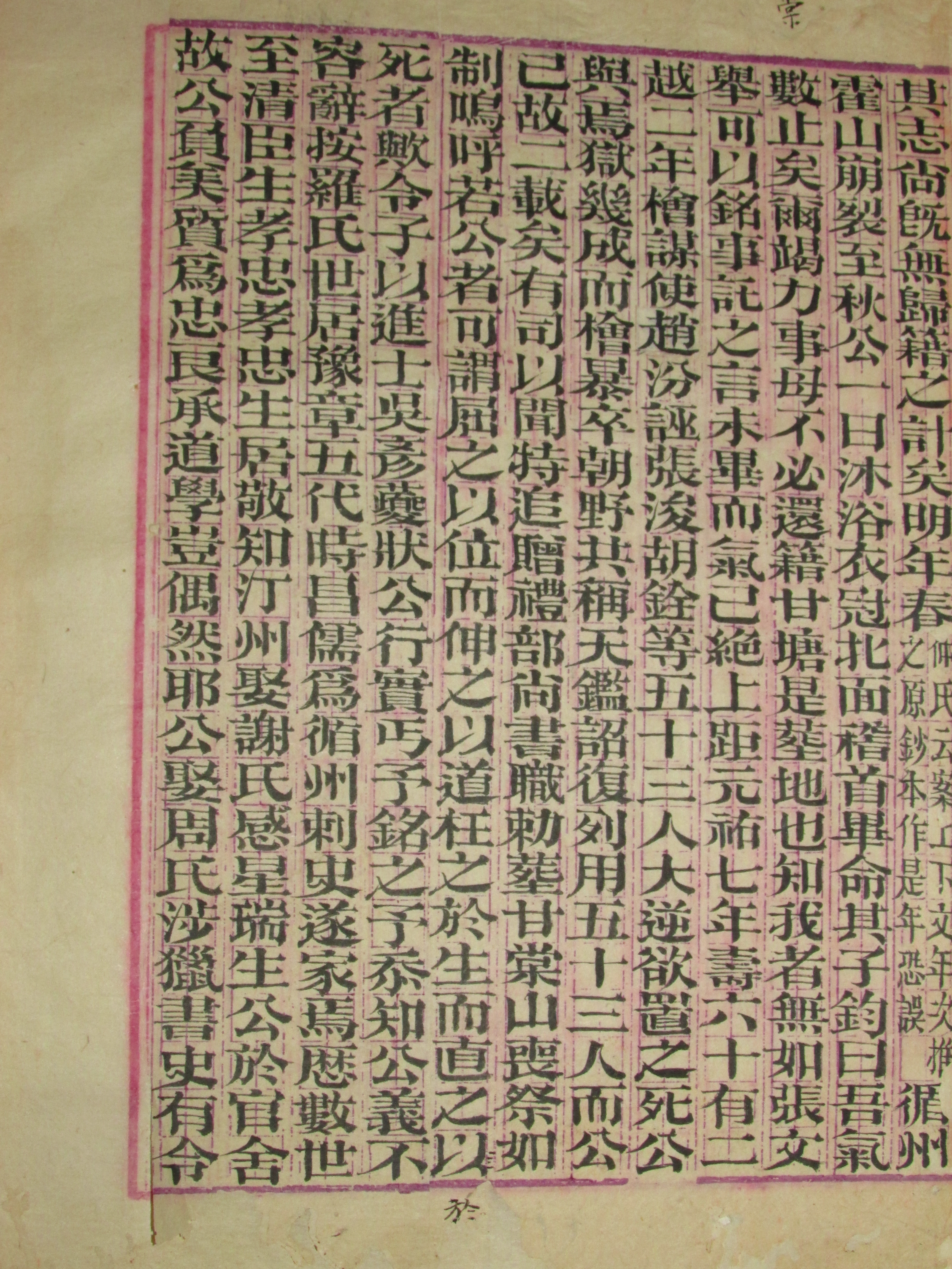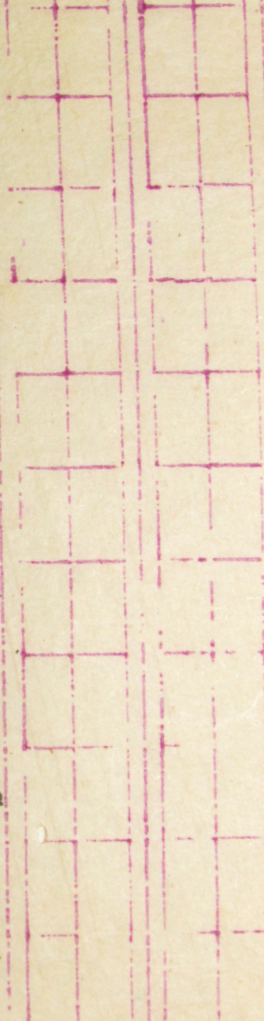 钱存训说法大致相同:“每纸用红色印制行格,称为花格。两行之间留有空白一行,每行三线,正中有一中线,作为每行之中准,使缮写得以整齐。如有注则双行小字,书写以中界为线”。