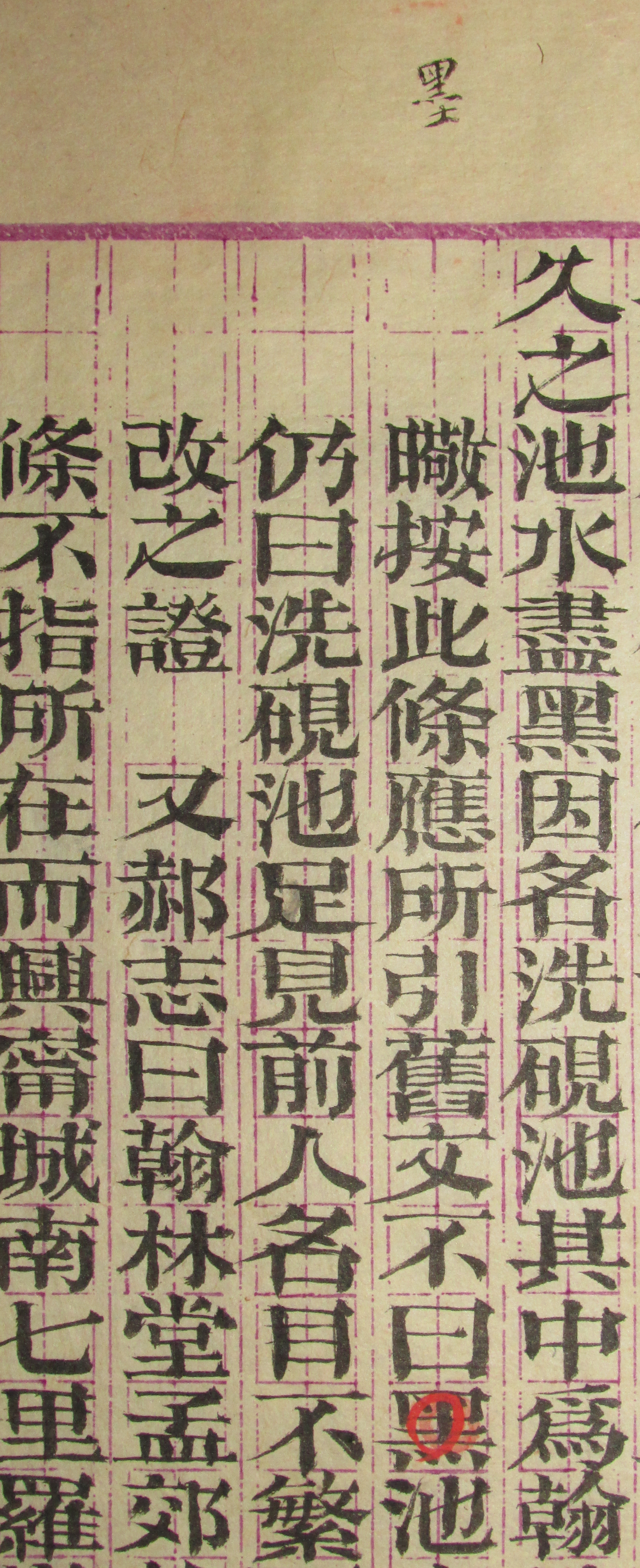 钱文亦称:“印刷时先以红墨印出初样,作为未校之用…有红、蓝二色,供样本初印或印制特种书籍所用。红墨为朱砂与铅丹混合剂,掺入白芨,用水蒸煮而成。或以苋菜制成液体,但色泽易褪。蓝墨为靛青所制,色泽经久不变”。