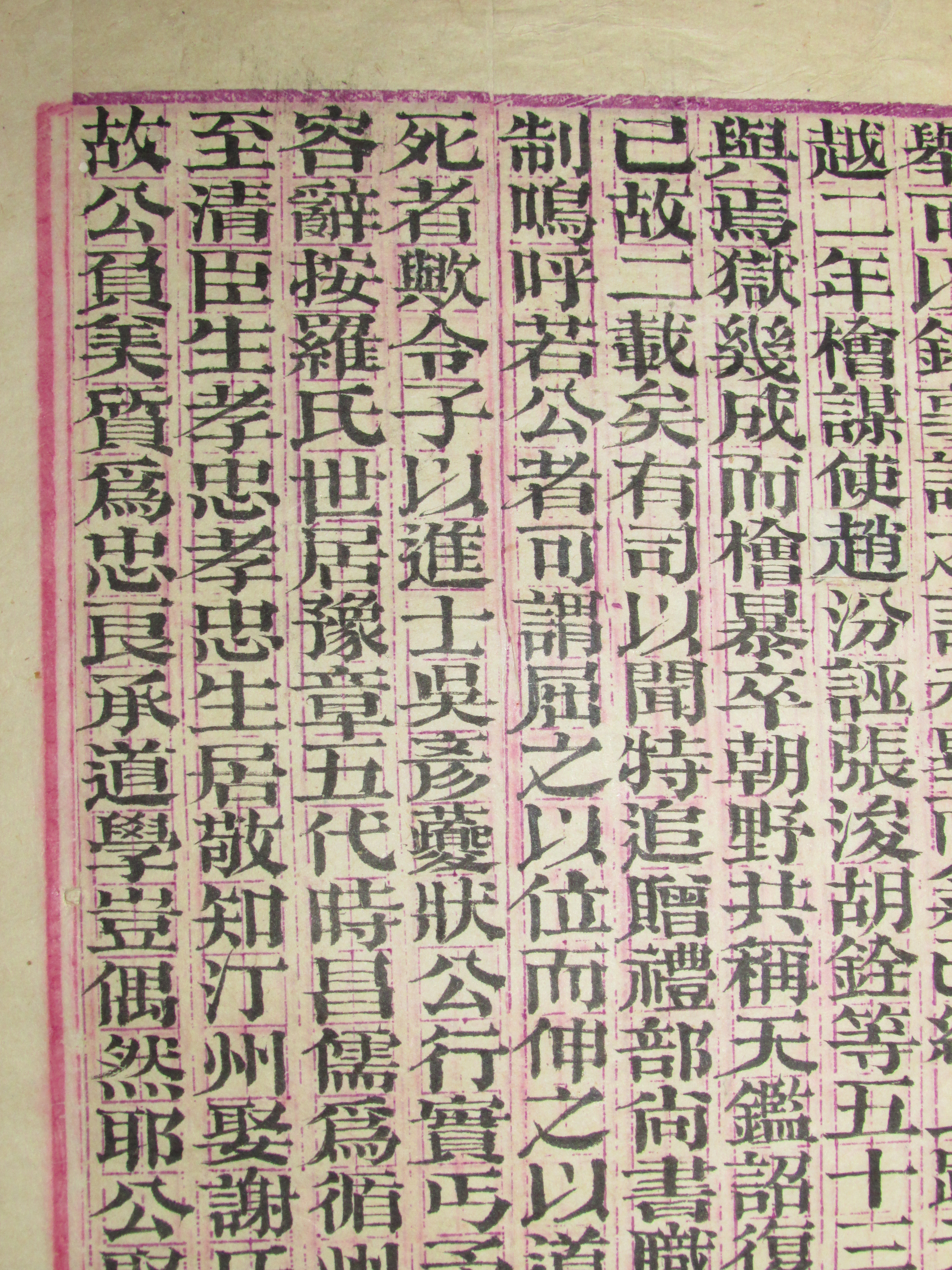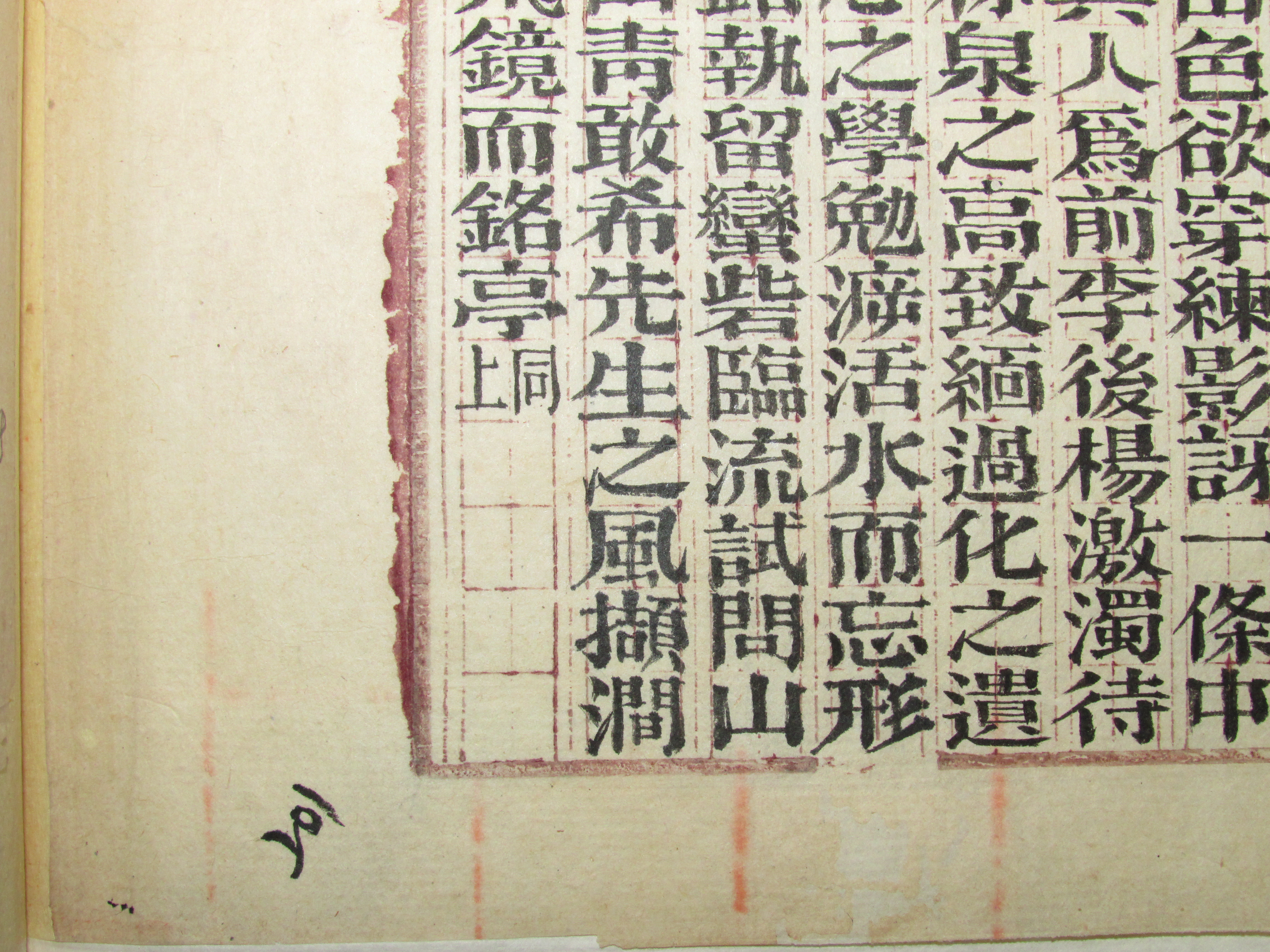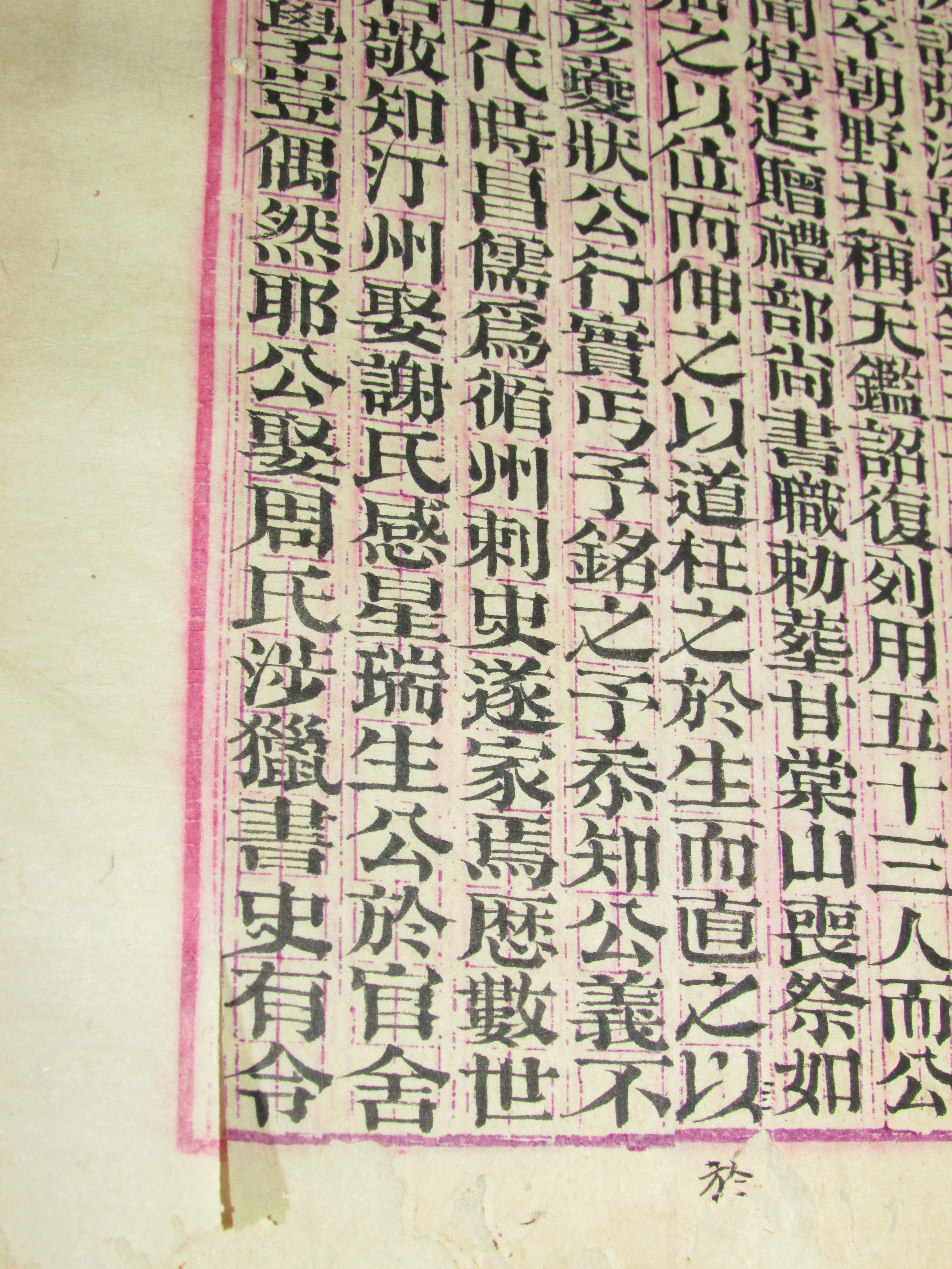 钱存训说法大致相同:“每纸用红色印制行格,称为花格。两行之间留有空白一行,每行三线,正中有一中线,作为每行之中准,使缮写得以整齐。如有注则双行小字,书写以中界为线”。