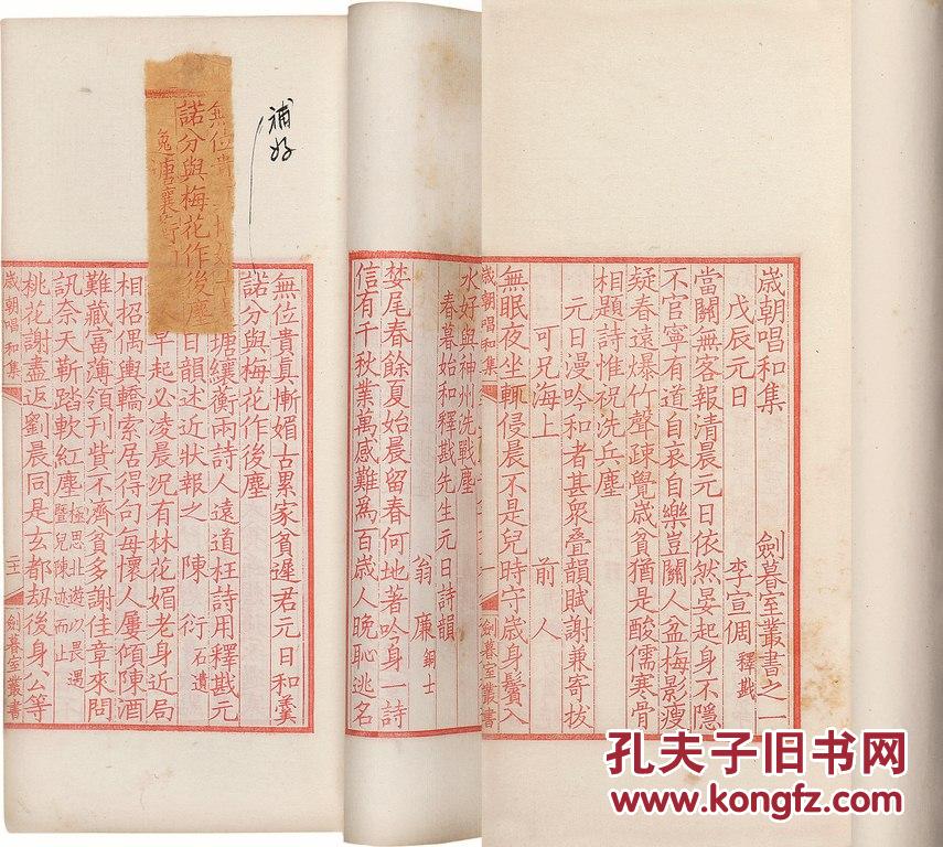 晚清红印本所用红色有两种:一为桔红色,又称朱印本;一为紫红色,又称洋红印本,现今泛滥的所谓清末民初红印礼品书,大体都是洋红本。此类货色在当日看来,无疑为笑料。卢文称:“印红书者。不可用洋红。以其见水即化。上者以银硃桃丹合四六成。用白芨煮水和之。下者。如旧日以红苋菜煮汤。收膏应用。均能沾水不变色。惟苋菜水现紫黑色。银硃桃丹则较鲜艳。今通常皆用银硃桃丹。已不知苋菜水之可印书”。