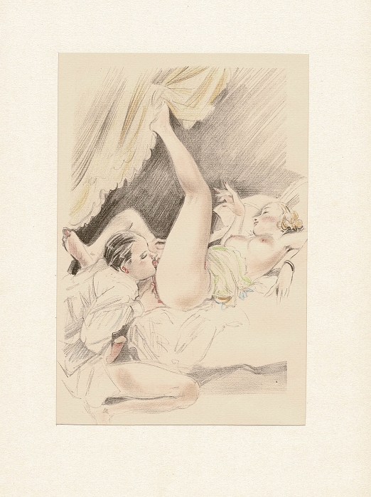 LE TRAIT DÉLICAT ET SUR DE L’ARTISTE REPRÉSENTE MAGNIFIQUEMENT CETTE RENCONTRE AMOUREUSE DANS L ATMOSPHÈRE PARISIENNE DES ANNÉES 1930. LE CHEF-D UVRE IMPRIMÉ DE ROJAN ET L’UN DES PLUS BEAUX PORTEFEUILLES ÉROTIQUES DU XXe SIÈCLE.”