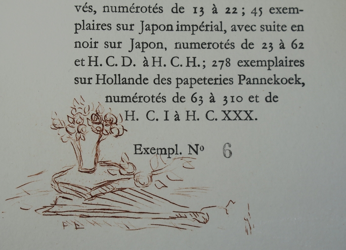 Un des 15 exemplaires de tête sur Whatman contenant 2 SUITES SUPPLÉMENTAIRES SUR JAPON, l’une en noire et l’autre en sanguine. celui-ci n°6.Enrichi d’un envoi autographe signé de l’artiste sur le premier feuillet blanc “à Monsieur Maurice Bock [Signature]”.