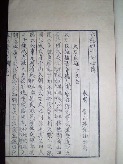 赤穗事件(又名忠臣藏)与“曾我兄弟复仇事件”、“键屋之辻决斗事件”并称日本三大复仇事件。其中以赤穗事件最为著名,素有“日本水浒传”之称。是书为主君复仇的47位赤穗47义士一一列传,特意不附训点,以规避幕府的出版审查。