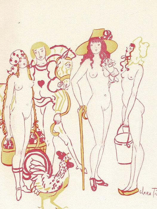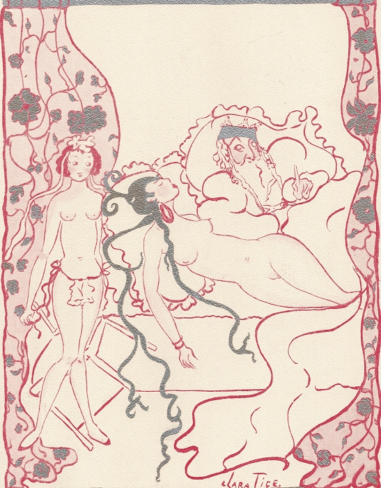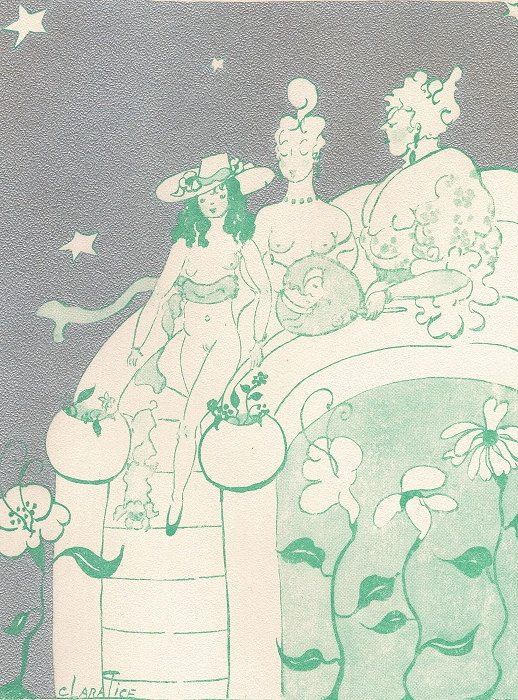 克拉拉·泰斯(Clara Tice,1888-1973):美國前衛插畫家和藝術家,她的大部分時間都在美國紐約市度過。生平公開露面挑釁傳統藝術,被視為波西米亞格林威治村的代表,素有“(傳統藝術)挑釁女王”之稱。