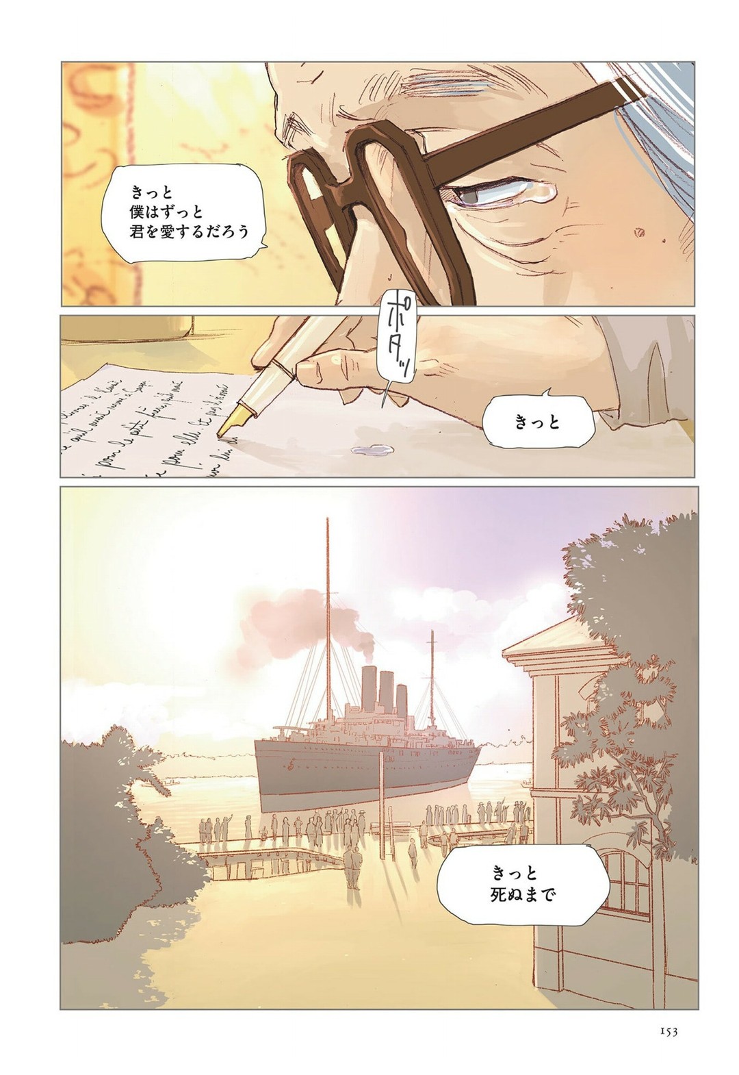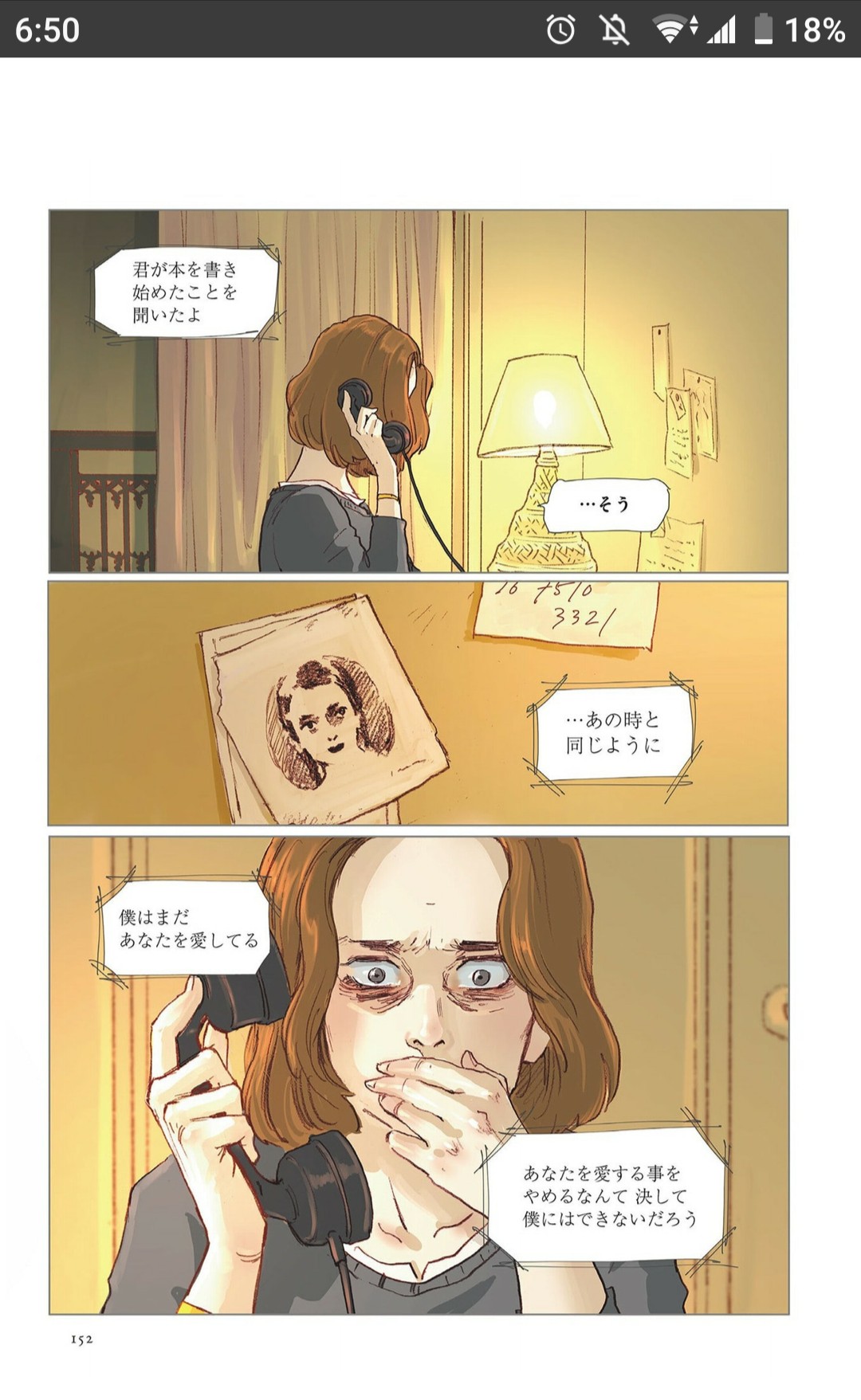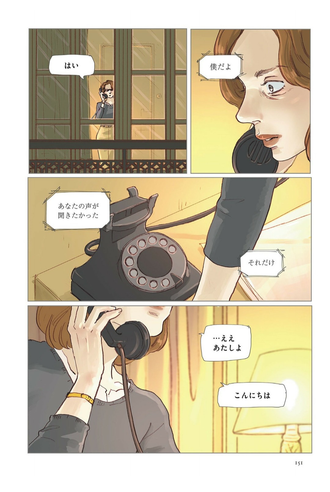 高滨宽漫画版情人的结尾,寥寥数笔,表达非常到位。中国人打来电话发生在50年代中期,大概杜拉斯40岁前后。这段文字本身并无难度,难点在于平淡的哀愁。这种感伤直接挑战人类的爱情底线。随手直译: