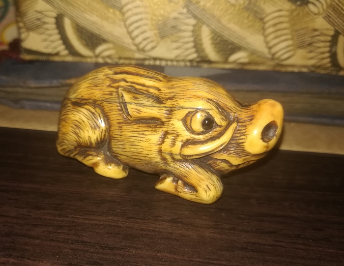 最近貌似和传说中日本最长寿的这老头有缘。玄武虽无铭但可确定为石舟作品,这点德国人已经提前考证过了。猪是标准牙虫派作品,对比MCI藏赤心斋木雕猪,显而易见高度吻合。