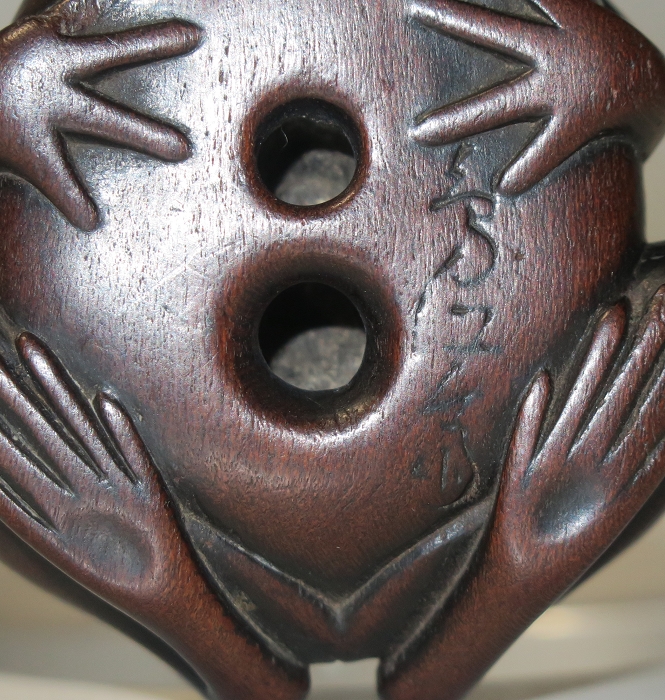 2鸟江斋,石见派,活跃于1800年代,以木雕蛙著名,尤以双重镶嵌著称。以上资料来自MCI,我很奇怪英国人为何比日本人知道的还多,简而言之资料来源何方?