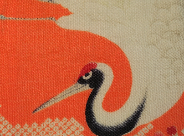 罕见鲜艳朱鹤题材锦纱横袋(独一无二)