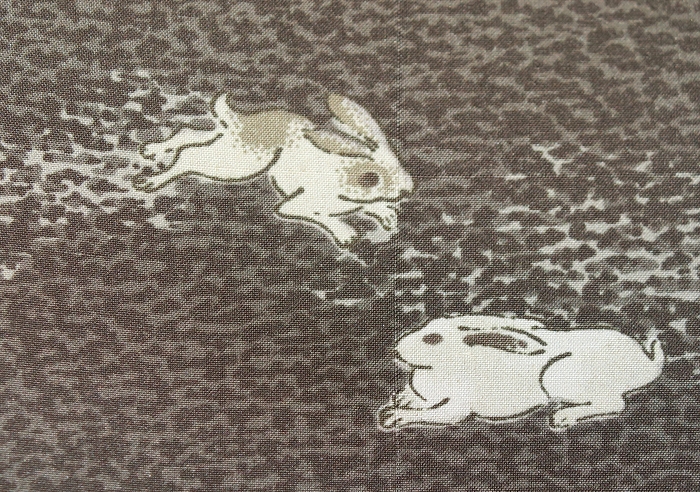 灰茶系の野に笹や2羽のウサギ柄羽二重の時代物正絹着物地で作ったソフトケース。キルト芯を入れてふんわり柔らかい、出し入れも簡単。陶器など大切なお品の保護、アクセサリ-入れとして観劇やお出掛けのお供に。愛用のお猪口などの携帯用袋としても好評。