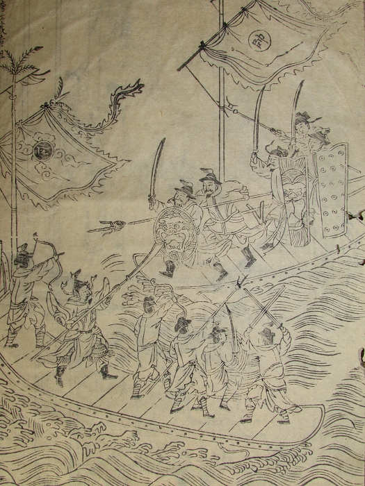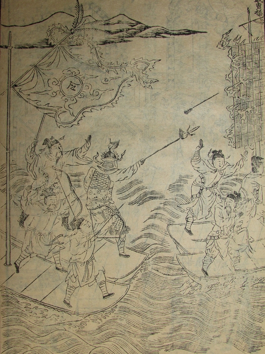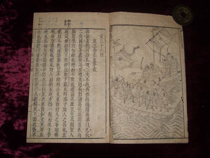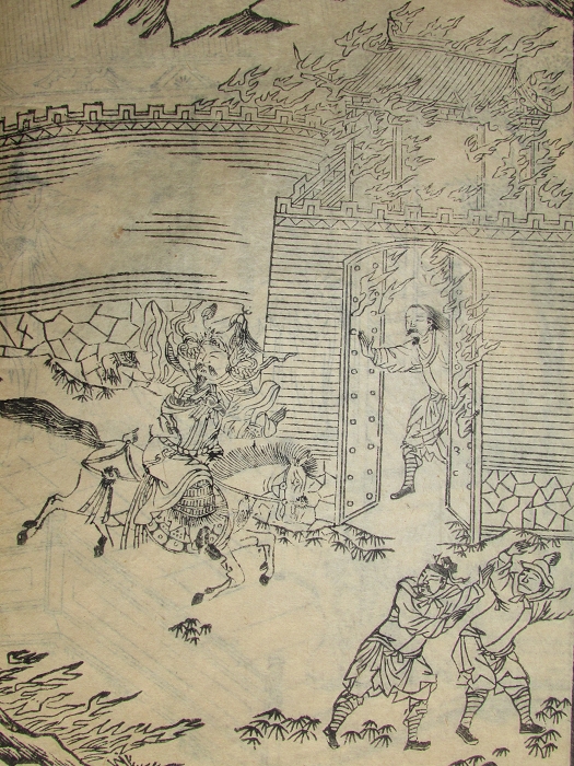 存38至52回原装2厚册一函,万历中后期建阳吴观明刊。每回前有插图1叶2幅(39回前无图),合计13叶26幅版画。第41回、51回标题“李卓吾先生批评三国志”。