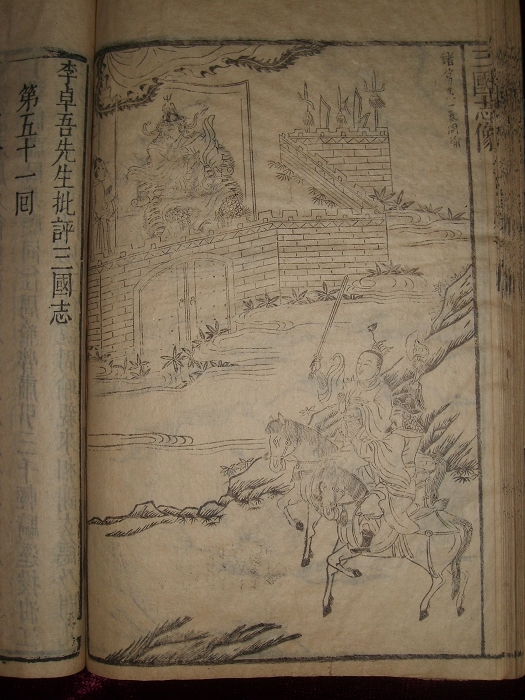 三国故事流传最远,脍炙人口。李义山骄儿诗“或谑张飞胡,或笑邓艾吃”,可知李唐之世已盛行乡邑间。至罗贯中集大成勒为专书。清初金圣叹、尤西堂、李笠翁最称好事,复目为俗本,大加修订。三百年来,言三国者遂以金、毛二氏书为定本,更不知有罗氏古本。善本例不及隆万以后,然每见图绘传奇,必至万历而始精。吴刻即流行清朝三百年间第一才子书之祖本,同为三国演义,明版无论章回内容均有若干差异。