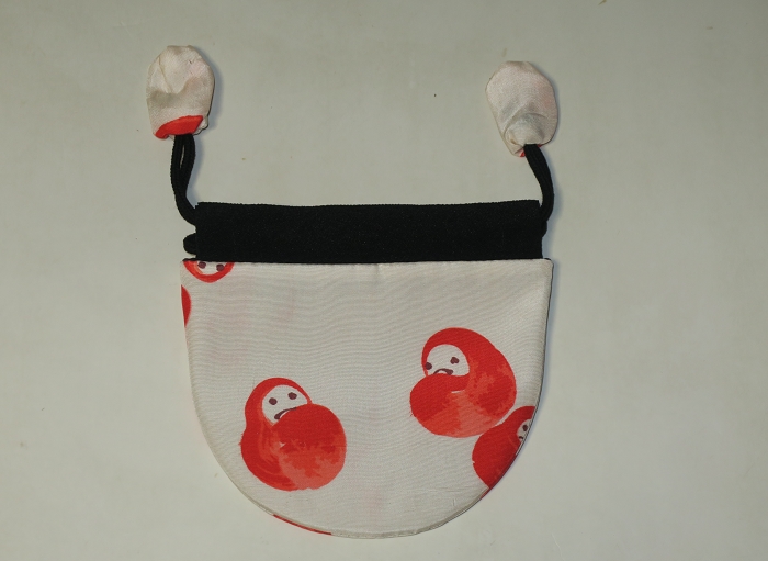 小物入絹丸袋—赤い可愛いだるま図柄